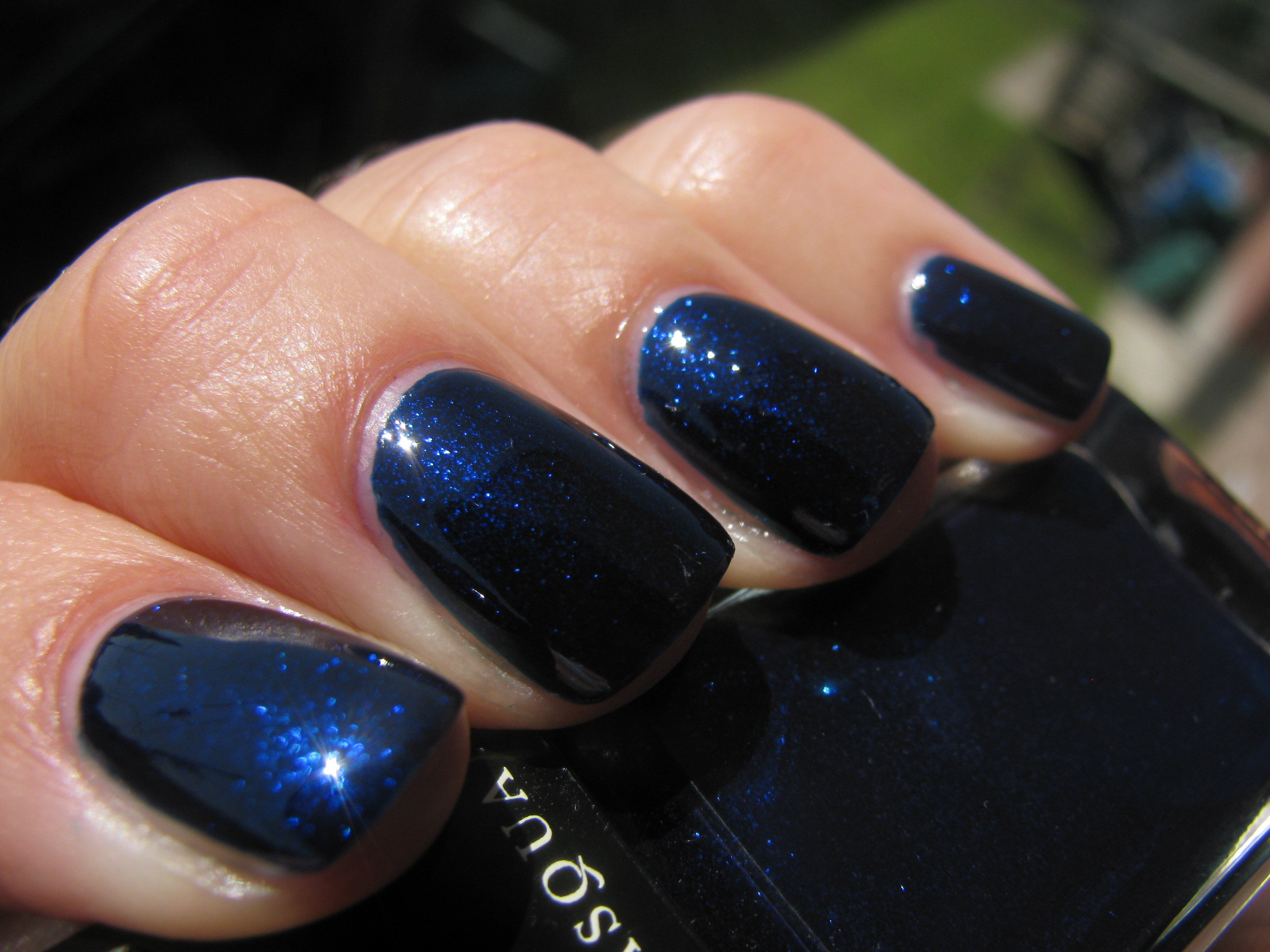 Sunlight is the perfect medium with which to fully appreciate the beauty of this shade; a cross between royal and navy blue, I love how the shimmer seems to almost jump out at you in the middle, drawing your eye inwards to fully appreciate all the nuances of this hue.