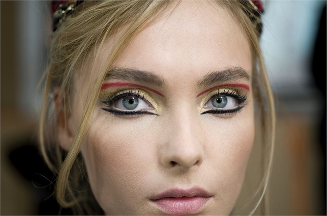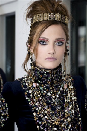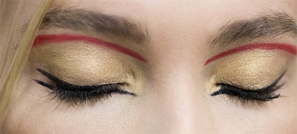 Drawn by the opulence of the Byzantine era, CHANEL’s Collection de Byzance channels the brooding lushness of the period with a limited edition capsule collection in tones of glimmering gold and sultry red. Peter Philips, CHANEL’s Global Creative Director, looked to the history of Empress Theodora, wife of Justinian I, and her distinctive fierce cosmetic look of a red line drawn on her eyelid (which also followed the shape of her brows), as the inspiration for his runway looks.