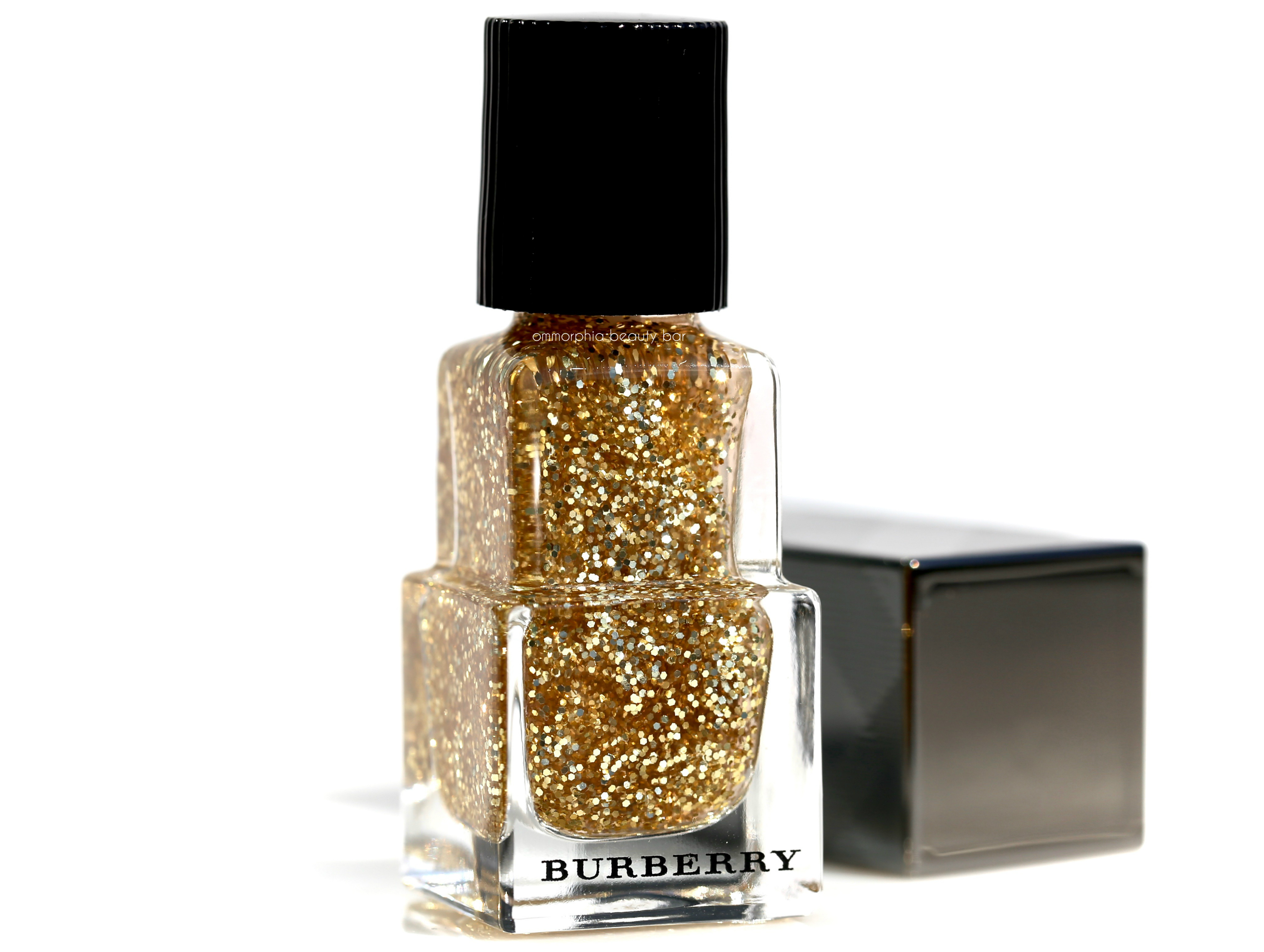 Burberry | Gold Glitter N°451 Nail Polish swatches (over Stone N°104)