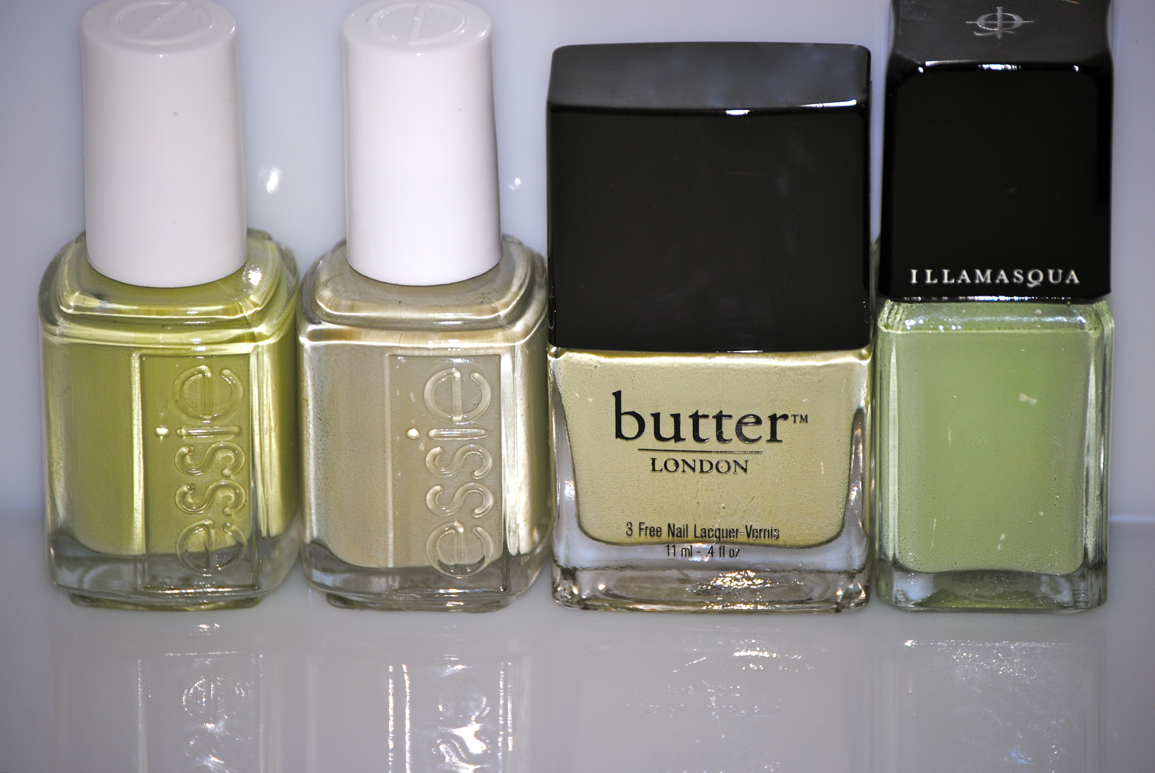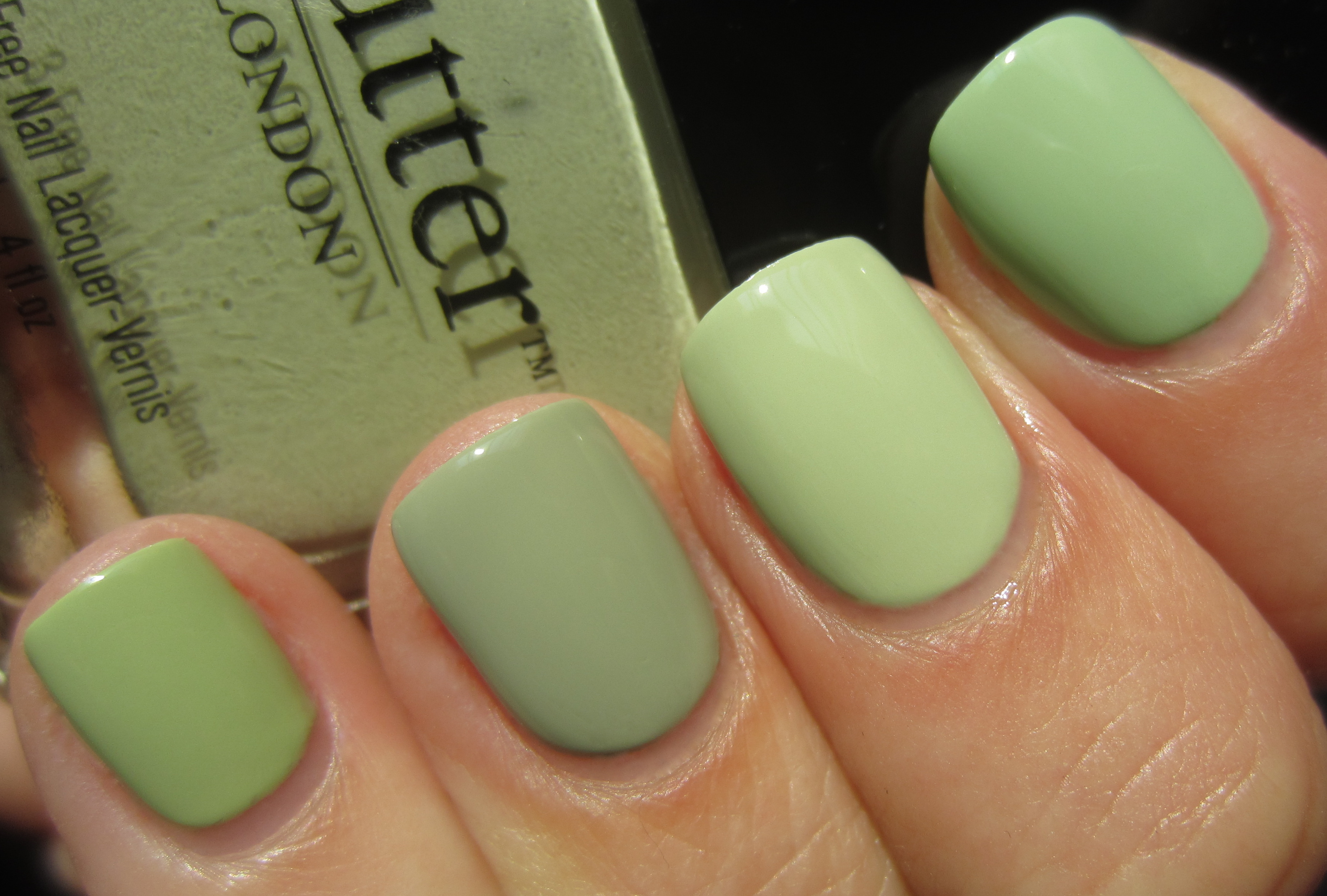 - index finger – Illamasqua’s ‘Milf’ (previously reviewed here): 2 coats, similar viscosity but more minty green