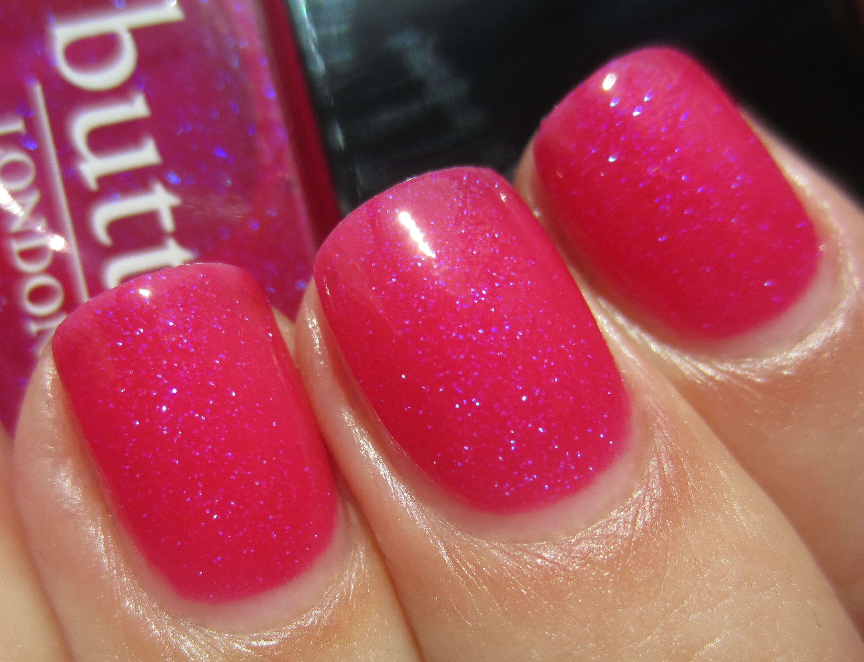 - middle & pinkie fingers – ‘Cute as a Button’: thinner, runnier formula almost jelly-like in consistency, colour more deeper pink based
