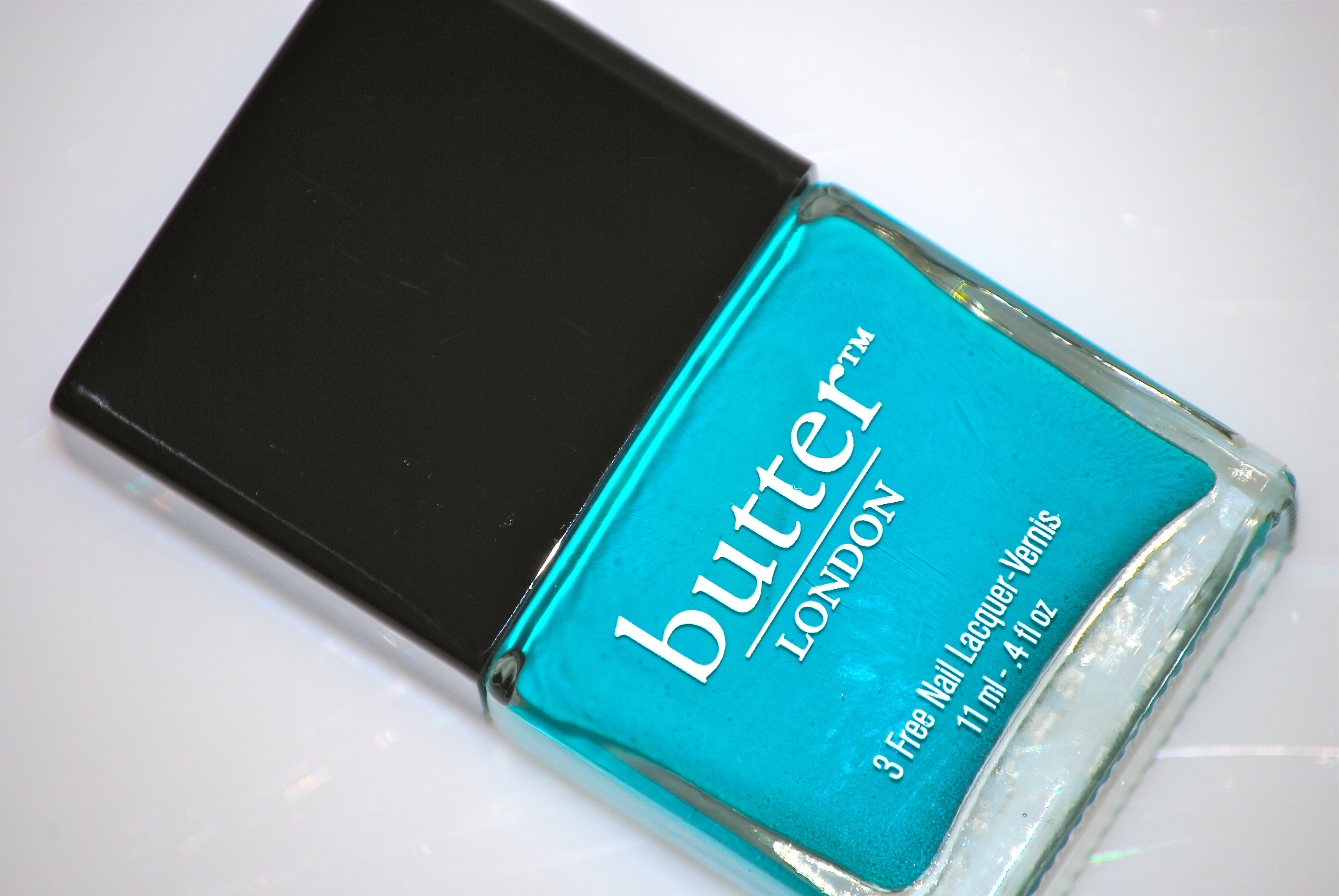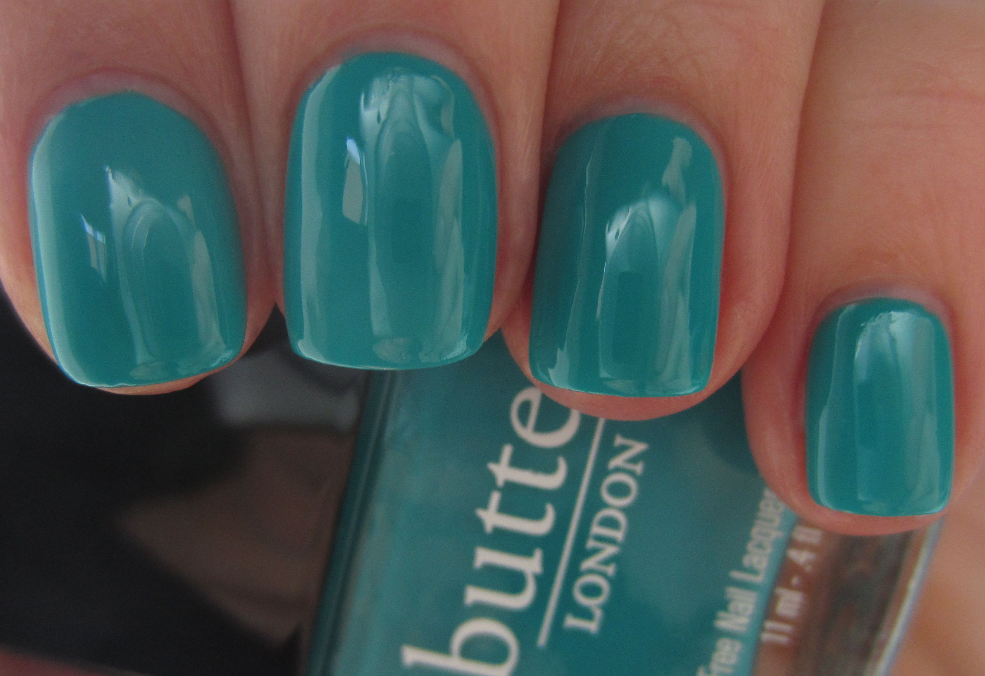 ‘Slapper‘ [Brit-speak for “slut”], is indescribably beautiful! A vivid teal/aqua crème-jelly hybrid that literally flows like silk across the nails, 2 coats would definitely give full coverage, but I prefer to apply 3 thin layers with this type of formula. Ultra glossy and levelling off perfectly smooth, this lacquer is THE epitome of a perfect summer shade. The most intense “Tiffany Blue” colour I’ve seen to date (and completely unique in my collection), this is nothing less than pure gorgeousness – LOVE!