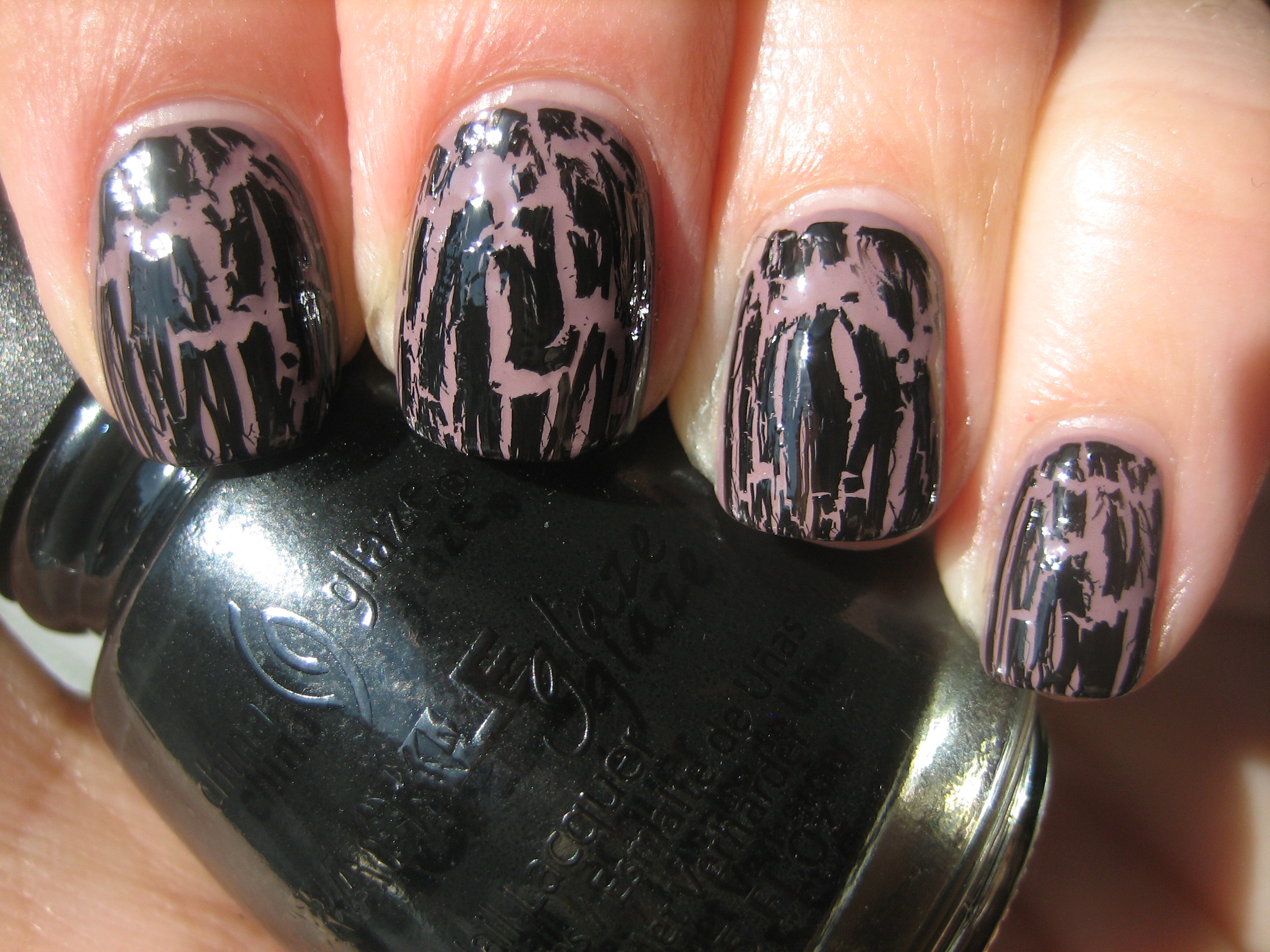 To achieve the subtle look I was going for, I applied two coats of China Glaze’s ‘Below Deck’ (reviewed here), a muted plum, from their ‘Anchors Away’ collection, as my base shade. The dusty mauve hue serves as the perfect foil for the black crackle effect without standing out too much, yet still manages to be quite chic looking. I was surprised by how much I really loved this one!