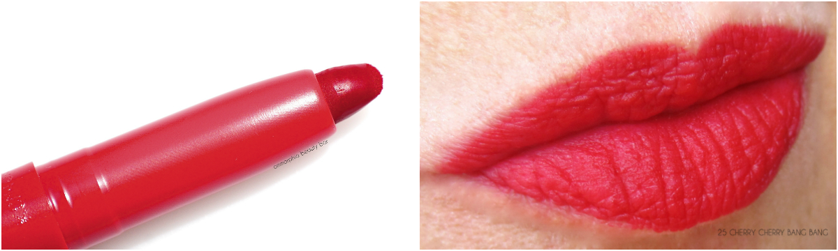 25 Cherry Cherry Bang Bang | intense maraschino cherry red, suitable on all complexions, highly colour saturated (I’m obsessed with this name. And the colour)