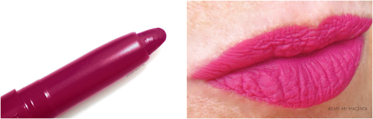 40 My-My Magenta | strong magenta with bluish undertones, cool leaning but can still be made to work on warmer complexions, leaves a gorgeous deep rose stain behind