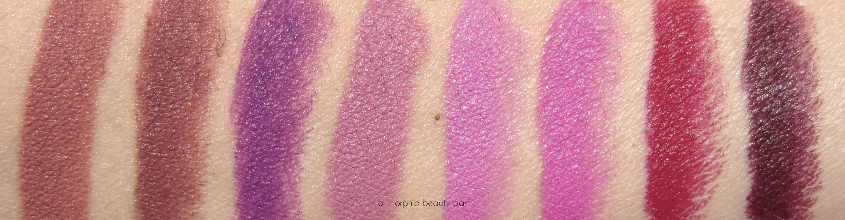 In order to see how accurately the Creamy Mattes perform, all swatches shown below have been applied directly from the bullet, without the use of lip liner or blotting. With regards to staying power, the paler shades last the least (averaging about 3-4 hours) with the deeper hues ranging anywhere from 5-8 hours, not factoring in eating or drinking. The deepest shades also leave a light stain behind on the lips after the majority of colour has worn off, and while I can’t say that my lips are left feeling hydrated with this formula, neither do I experience any drying issues.