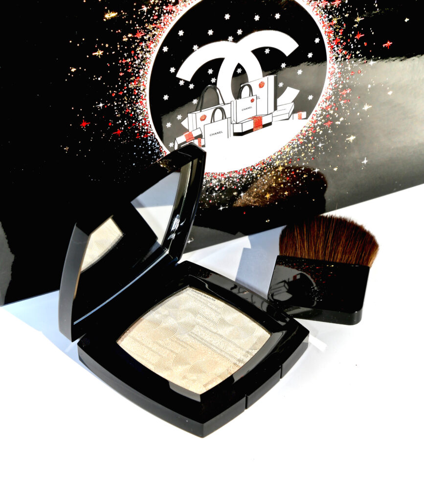 I couldn’t think of a more appropriate way to end 2019 than with this spectacular beauty, CHANEL’s Duo de Camélias Illuminating Face Powder. An online exclusive, this was one I was not going to pass up on — mainly because you all know about my obsession with this brand (seriously; click the CHANEL tab in the sidebar to see exactly what I’m talking about), but also because something about the pattern literally stopped me in my tracks. And then I realized: this would make THE perfect highlighter to wear on New Year’s Eve. I love it when all the stars are aligned this way!