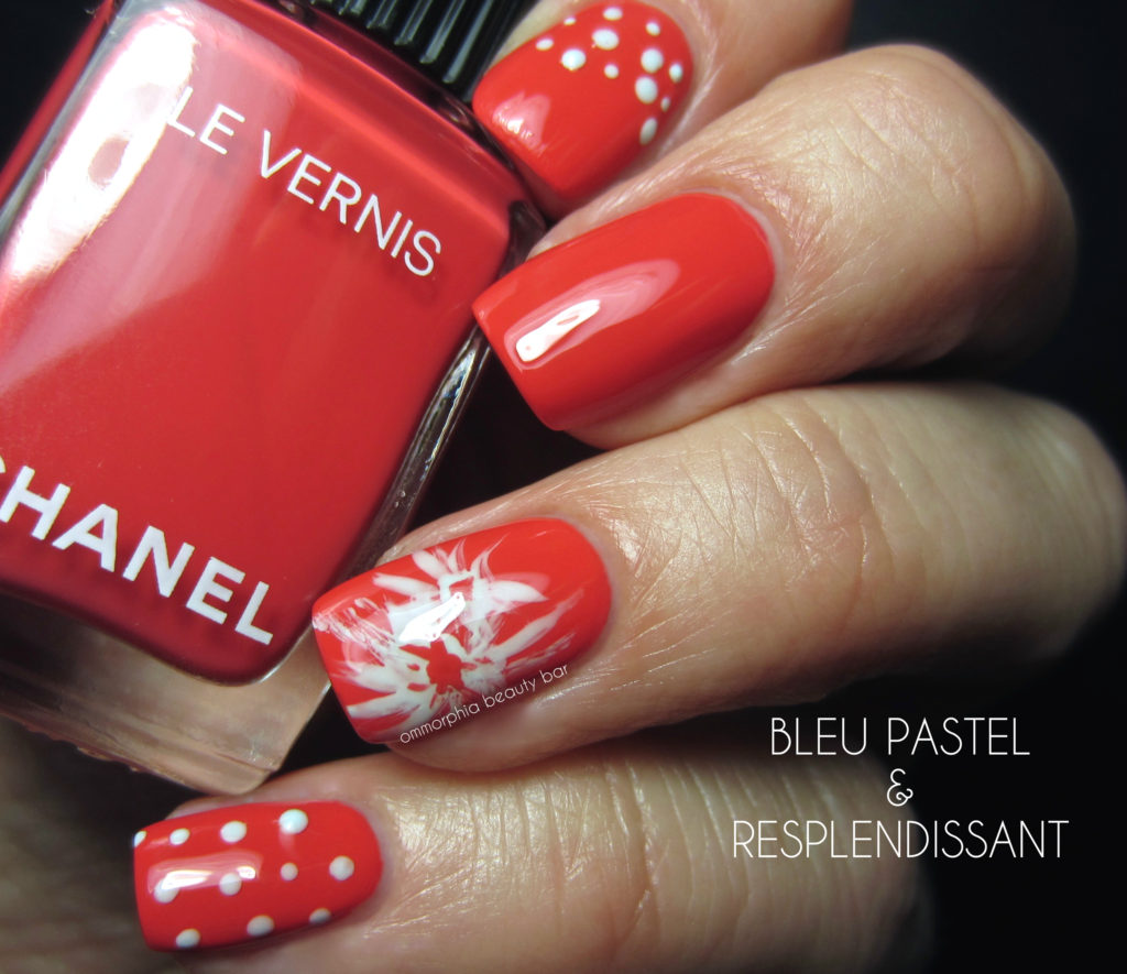 It’s not often that I try my hand at nail art, but something about these two made me want to see them together; I used Bleu Pastel over 2 coats of Resplendissant to create the designs seen above, and while not perfect, I still like how it turned out.