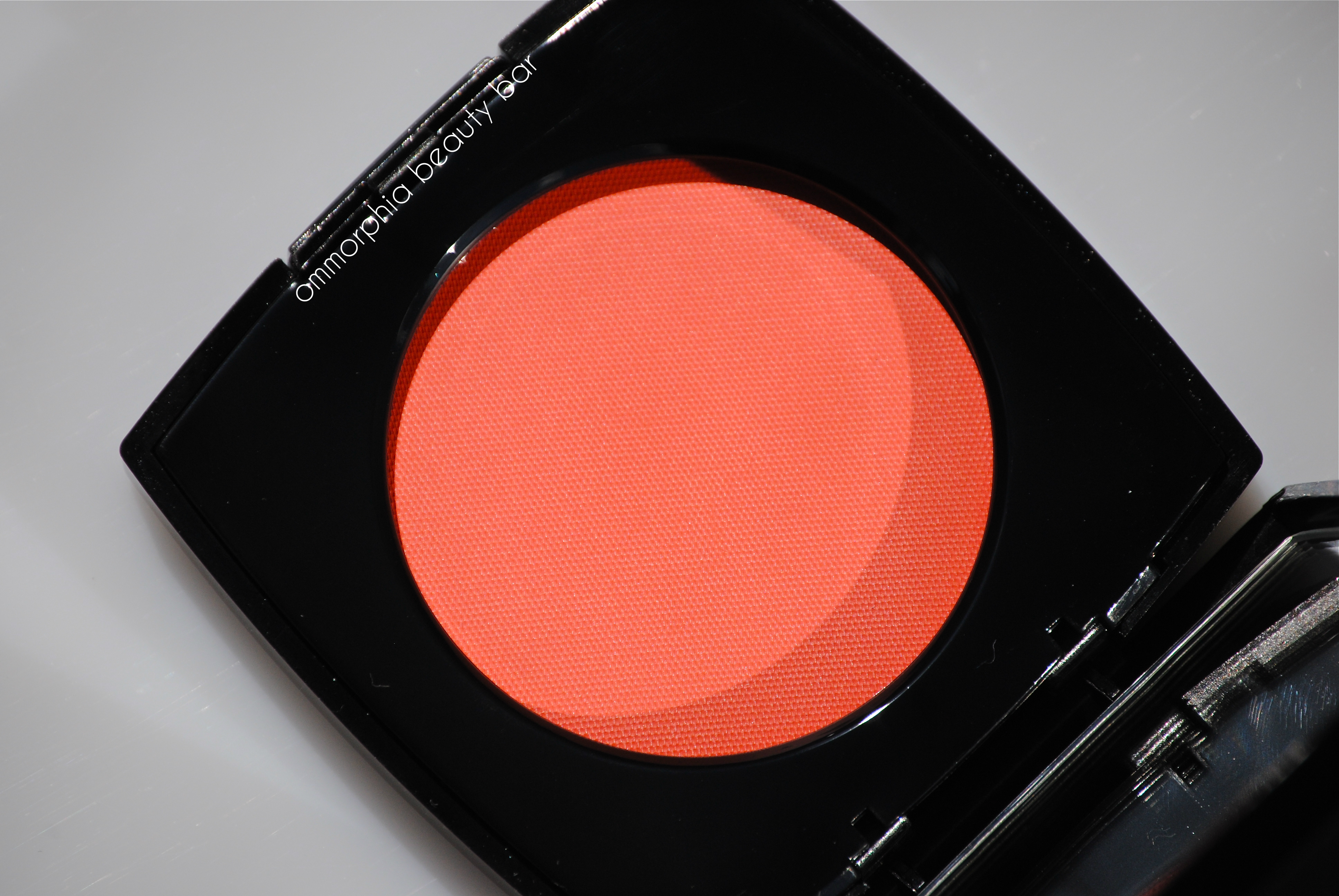 #62 Présage (US $38.00 – 0.09 oz/2.5 g) – this is a hot and vivid coral/peach shade with a definitive orange cast to it seen in the pan, which thankfully doesn’t translate onto the skin. There’s a faint shimmer seen on the product surface, although it’s not apparent when applied, but most likely serves to add depth and catch/reflect light. This relatively unscented blush product comes with the usual CHANEL velour sleeve for added protection, especially useful when travelling. Lasting power was quite impressive as well, going easily 12 hours without any fading – longer when applied more densely. As this is a warm leaning shade, it is best suited for medium to darker complexions, while fairer skin might find this absolutely perfect to go with a light tan.