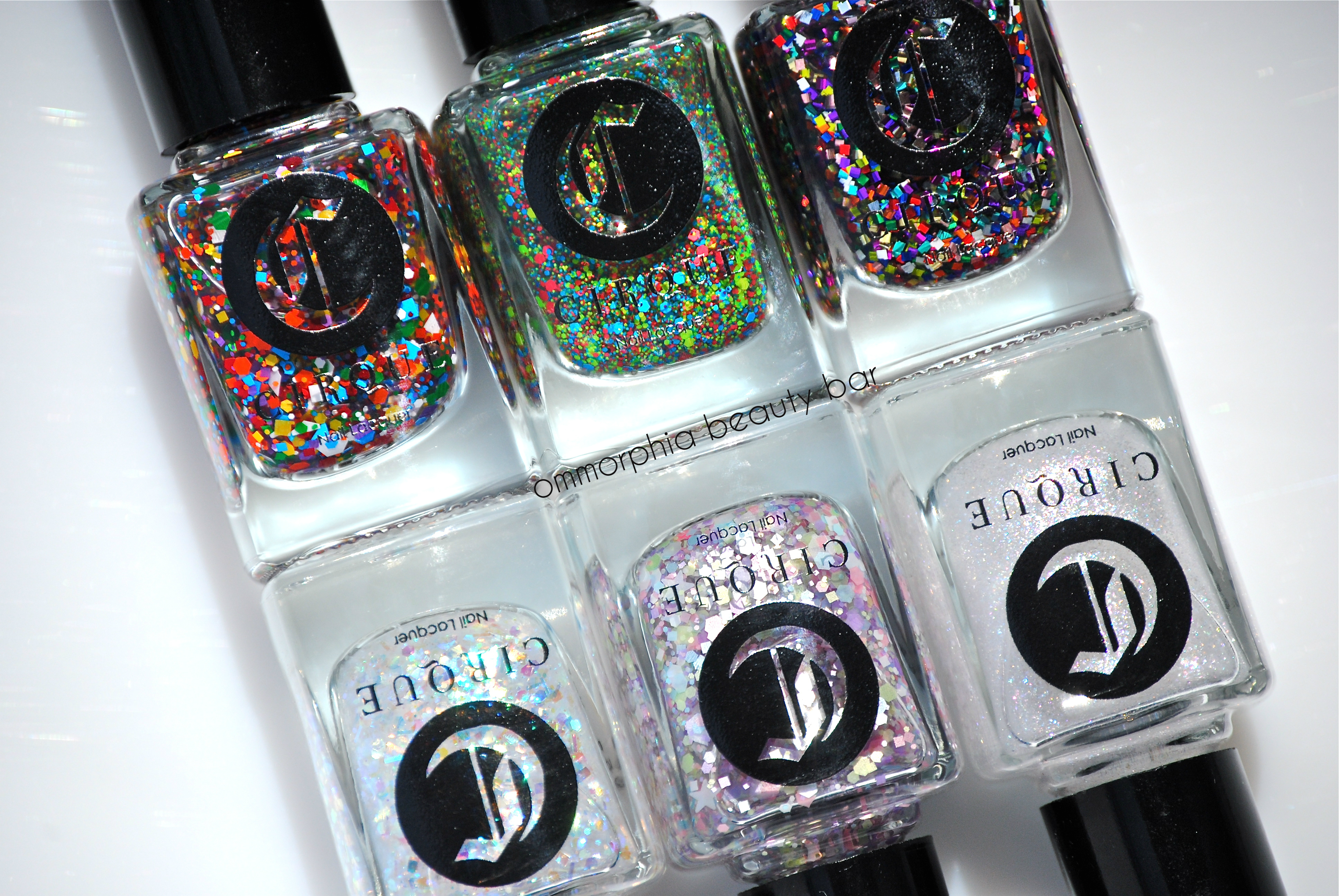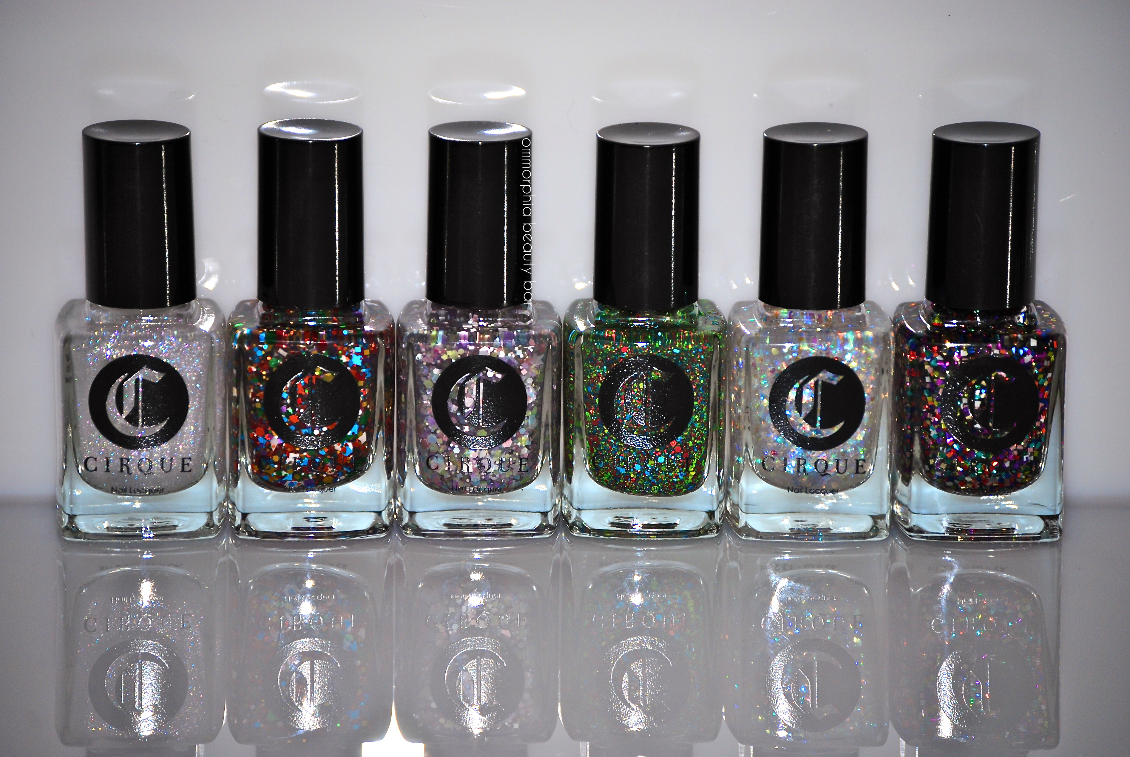Whereas part 1 of the Cirque Colors Arcus Collection (reviewed here) brought us the colours of the rainbow in a host of brilliant finishes, part 2 takes a more lighthearted approach – although no less brilliant – and brings us some more visual interest, if that’s even possible. Glitter polishes are not just for pre-teens anymore – as this collection can attest – and since the 6 shades of this grouping are all toppers, the layering possibilities are literally endless – the only restriction is your imagination.