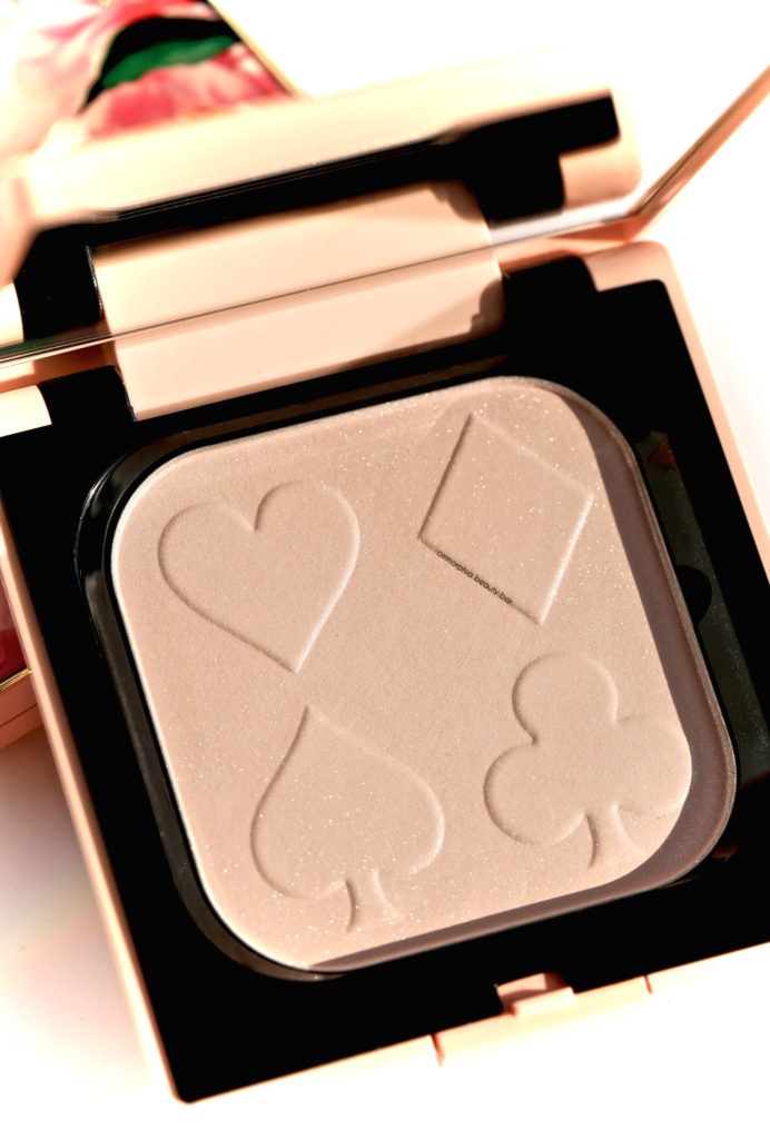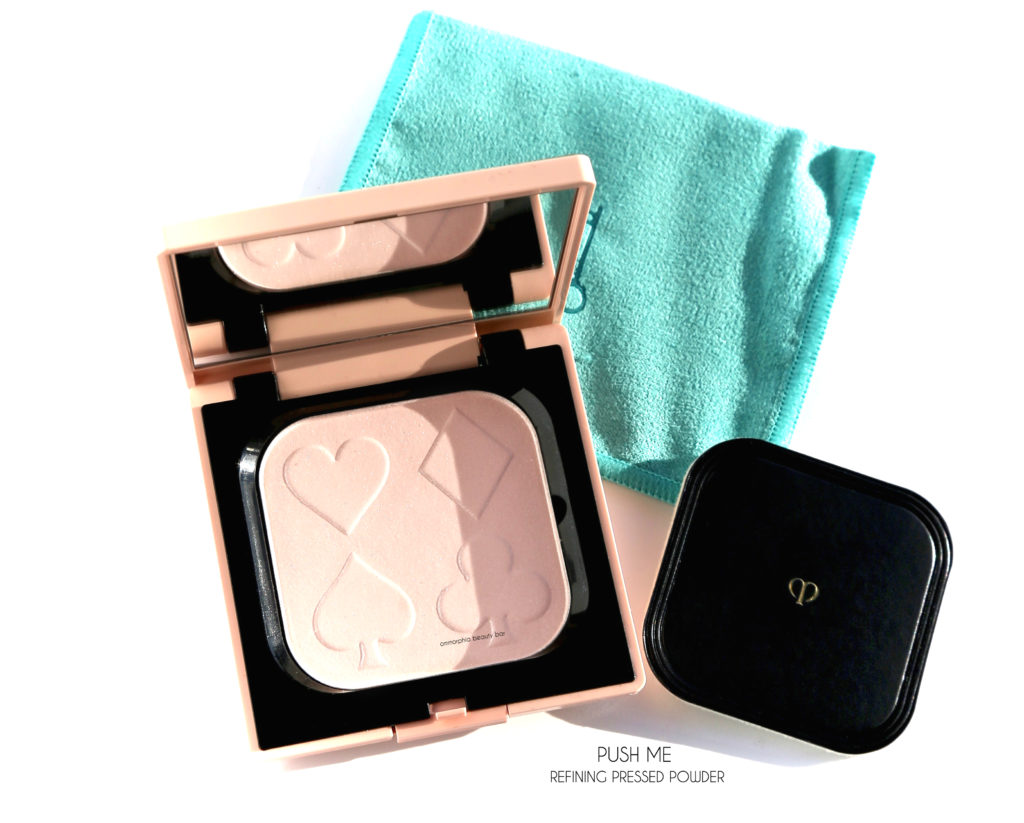 Push Me Refining Pressed Powder, limited edition (CAN $140.00) | With a stunning illustration on the outer cover, the inside reveals a pressed powder in an icy pink hue embossed with the 4 playing card symbols (which will definitely be worn down with use). The texture is incredibly fine-milled and the slight shimmer seen in the pan along with that subtle rosy tone, all work towards imparting a brightness to skin tone (although I don’t think it will be suitable for those with darker complexions). Another advantage is how effortlessly it blends into the skin, and never looks like its sitting at surface level. Perfect for setting your makeup and might even help in keeping natural oils at bay — at least for a little while.