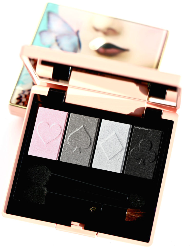 Tea Party Eye Color Quad, limited edition (CAN $110.00) | Housed in a sturdy peachy-pink plastic case (but which feels as luxurious as something heftier) bearing a stunning illustration on the cover, this compact comes with a full-sized mirror on the inner lid as well as 2 small applicators (which I personally can always do without). Each of the four shades come embossed with a playing-card symbol that will wear down with use, and the hues are all relatively cool leaning, with a lovely ethereal quality to them; I can totally see the Japanese aesthetic for translucent colour represented here. With a buttery smooth texture that’s both seen and felt upon application, they all display an excellent blendability and while not super pigmented, they can always be built up for more depth. That said, I actually prefer the ‘Snow Queen’ vibe they impart — so in tune with the season and a nice departure from a more traditional palette.