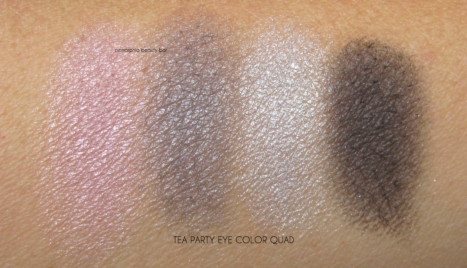 Paint me Lipstick Cashmere, limited edition (CAN $80.00) | I’ve said often enough that I’m a total sucker for details, and I must say that this lipstick borders on the exquisite. Housed in the same peachy/pink casing as the rest of the collection, the tube also bears a blue argyle design to go with the whole Wonderland theme, while the bullet is really the main attraction. Take a close look: see that tulip-shape? Apart from being absolutely unique in the genre, it also happens to hug lip contours better than anything I’ve ever tried before. The texture is velvety smooth and the colour unbelievably pigmented, laying down opaquely from from first swipe and coming to a lustrous satiny finish. Staying power is amazing as well (although reapplication will be needed, given its emollient nature), and it leaves a gorgeous stain behind.