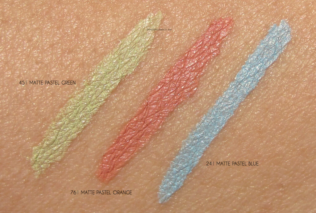 Diorshow On Stage Liner Waterproof (CAN $35.00) | Following the success of earlier shades in this format, Dior has launched 3 Easter-egg hues for this collection, and all in a waterproof finish. The product is dispensed by clicking the top end, and each liner has a felt-tip point sharp enough to help you create precise lines, or used with more pressure towards the wider segment for a thicker look. Imparting a 60s-mod effect, each hue may be pastel in nature but still offers good coverage.