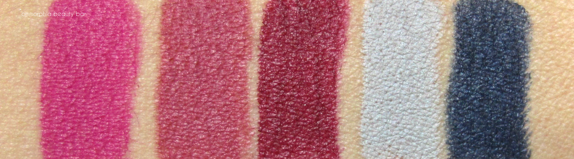 An ultra matte formula that’s as far from the moisture-draining genre as one can possibly get, these go on highly colour saturated from the very first swipe and while they never dry down to a truly matte state, they nevertheless come to more of a velvety finish. Extremely comfortable, there’s no bleeding or migration into fine lines throughout the wearing, with the more bolder shades leaving behind a light stain once the majority of colour has faded.