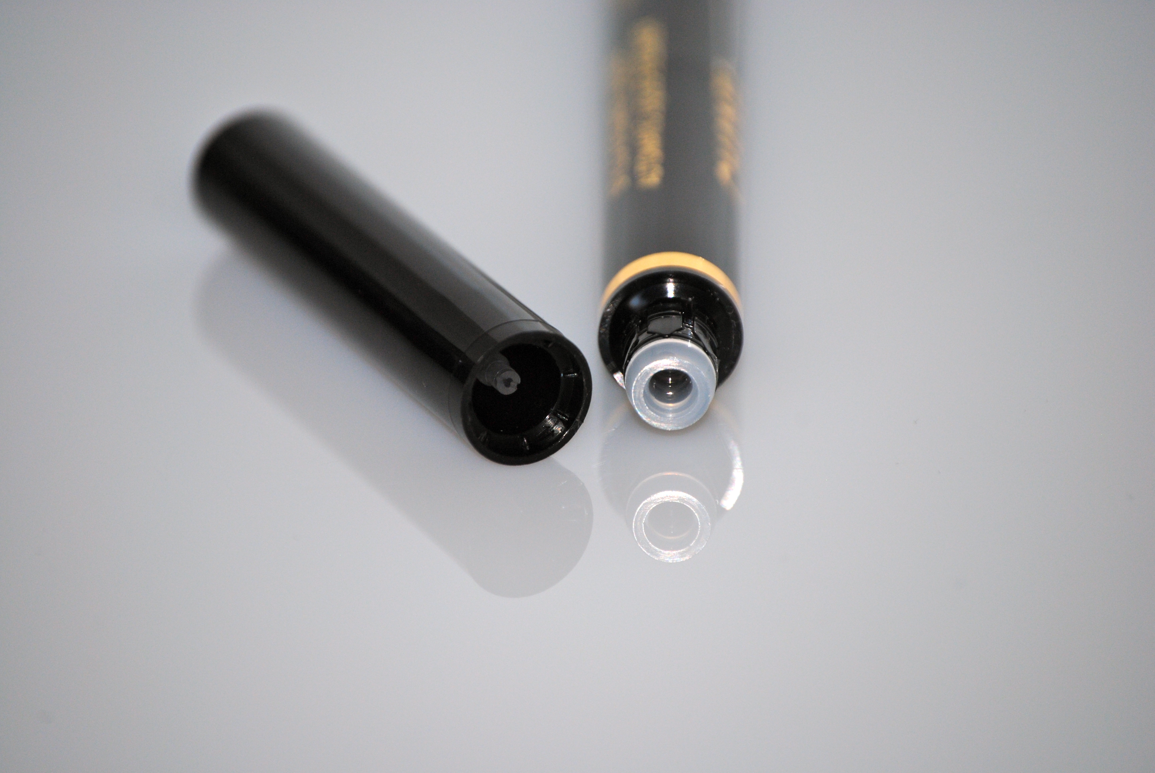 #20 Automatic Liquid Eyeliner in Brun/Brown is like deep & dark molten chocolate. The convenient to hold and use pen format comes with a small primer ring dividing the 2 halves that keeps the liquid contents firmly in the barrel of the pen until you are ready to begin using it; once removed, the next step is to click the ring at the top of the pen until you see the colour begin to run into the brush.
