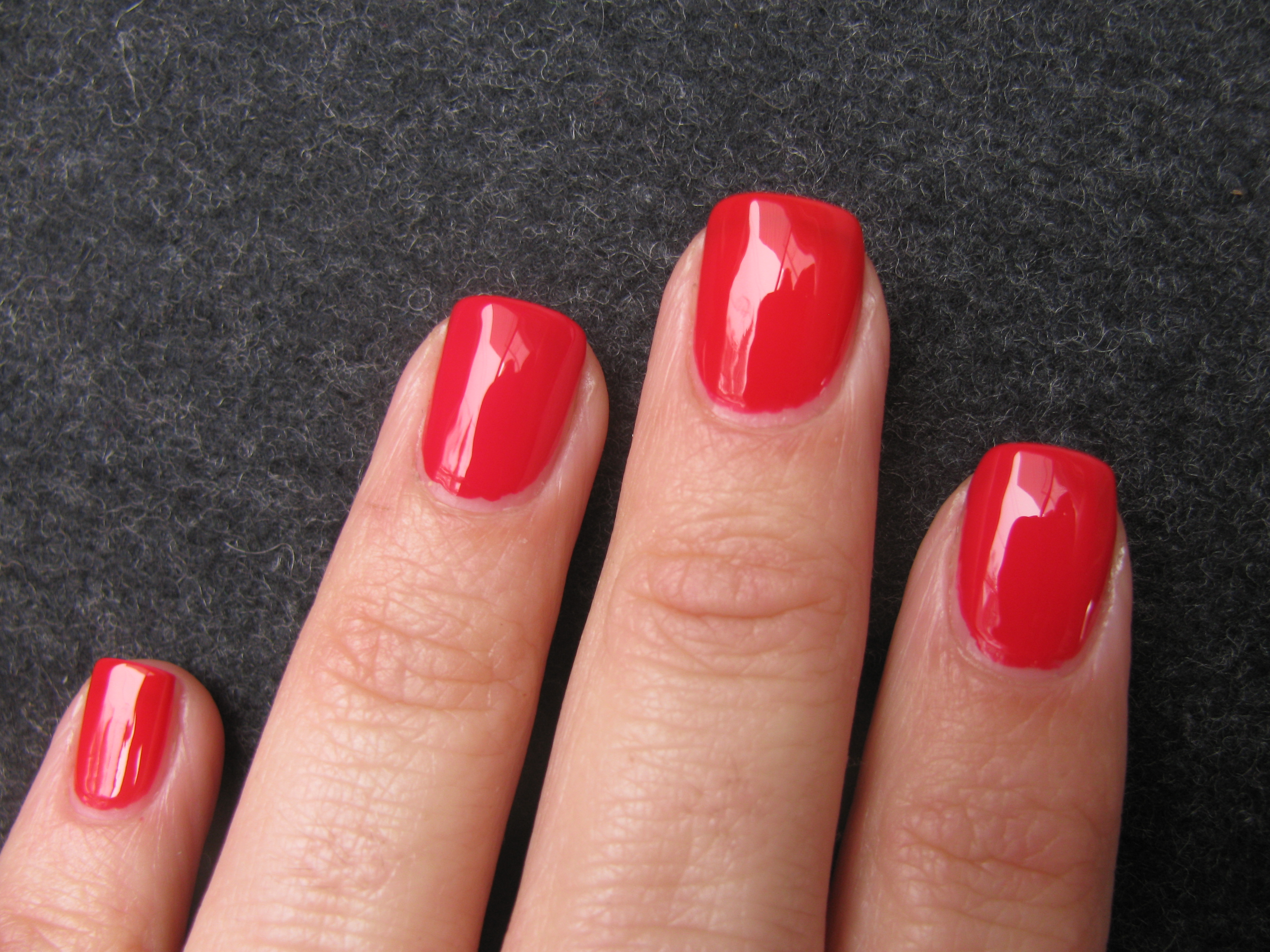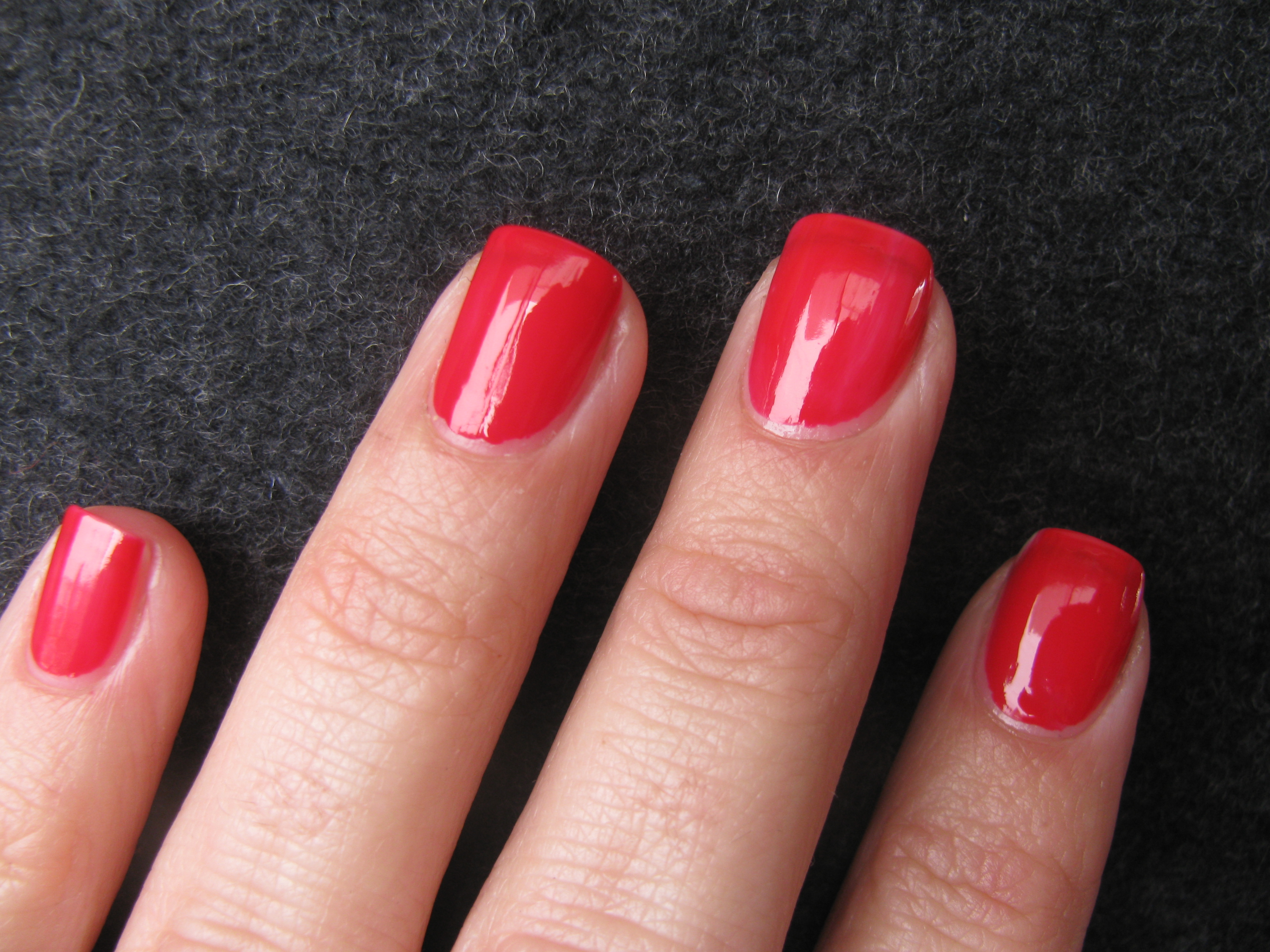 The second coat brings out the differences between the two; whereas Silken Cord has that bright maraschino cherry pop to it, Lollipop seems to veer just a touch more to the orangey red (you can still see the nail line slightly).