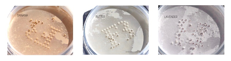 I tend to concentrate more on colour cosmetics and skincare, and it’s not until I have an event where my makeup needs to stay the course while looking flawless, that I turn towards what I call the “support system” i.e.: primer and setting powder. At those times, I want products that will do the job invisibly and that’s exactly what these powders strive for. On my complexion (combination, light-medium tone & which tans easily) Banana turned out to be my best match, with Butter coming in a close second. Lavender is obviously much too light on me for overall application, but does an excellent job of brightening my undereye area without giving me that dreaded “raccoon effect”. While said to work with all complexion types, my gut tells me that those with drier skins might need to test these out in person before committing.