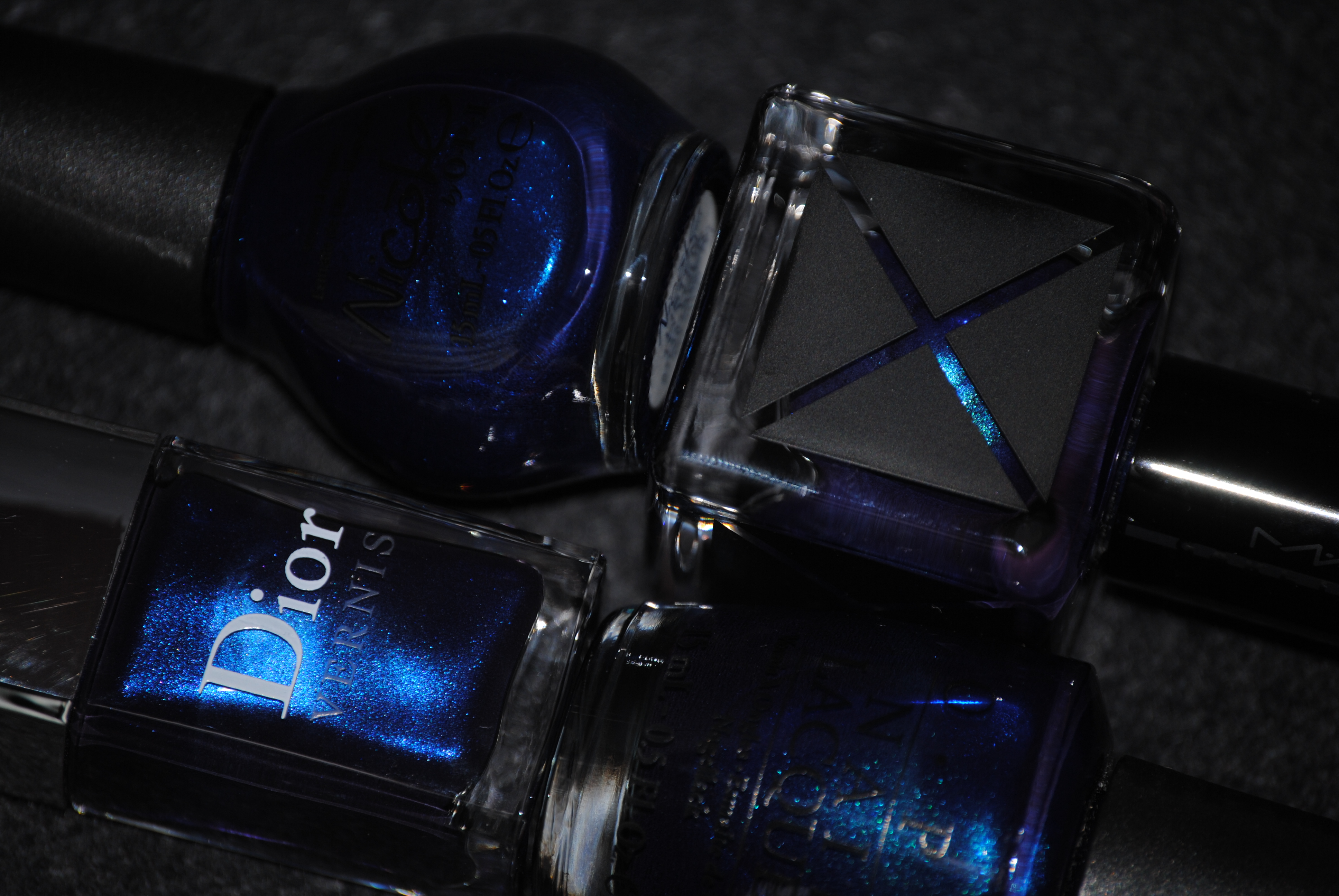 In indirect light, you catch slight hints of purple in both the OPI and ‘Hyper’, with the Dior’s obvious darker tone setting it far apart.