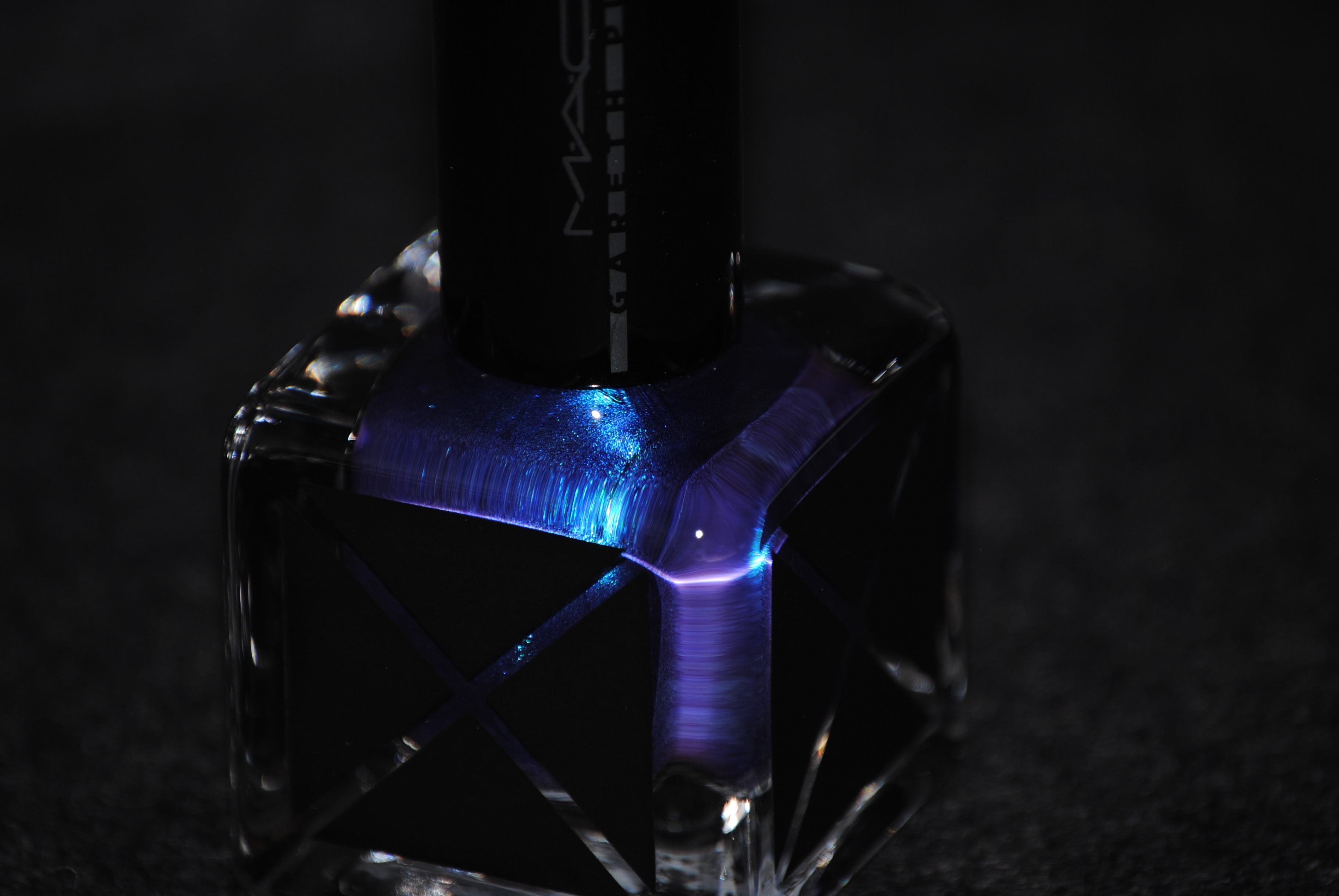 Final thoughts: A while back, I had personally declared that this year shades of blue would undergo a renaissance of sorts, and I still stand by that statement – especially after wearing this gorgeous shade. I really do wish that the duochrome flash one is first introduced to from the bottle, actually translated more obviously once applied, but it doesn’t detract from the fact that this is a really luxurious and richly pigmented lacquer. Is it a unique colour? The fact that I was able to pull out at least three comparison bottles says “no” – however, none of them actually had all the elements of ‘Hyper’. It’s a wonderful formula and non-staining: a total win for me. My only real complaint is that while regular MAC lacquers retail for CAD $18.00 for 10 ml/0.34 fl.oz, the Gareth Pugh lacquers are a much heftier CAD $27.00 for 9 ml/0.30 fl.oz. which explains why I only went for the one…!