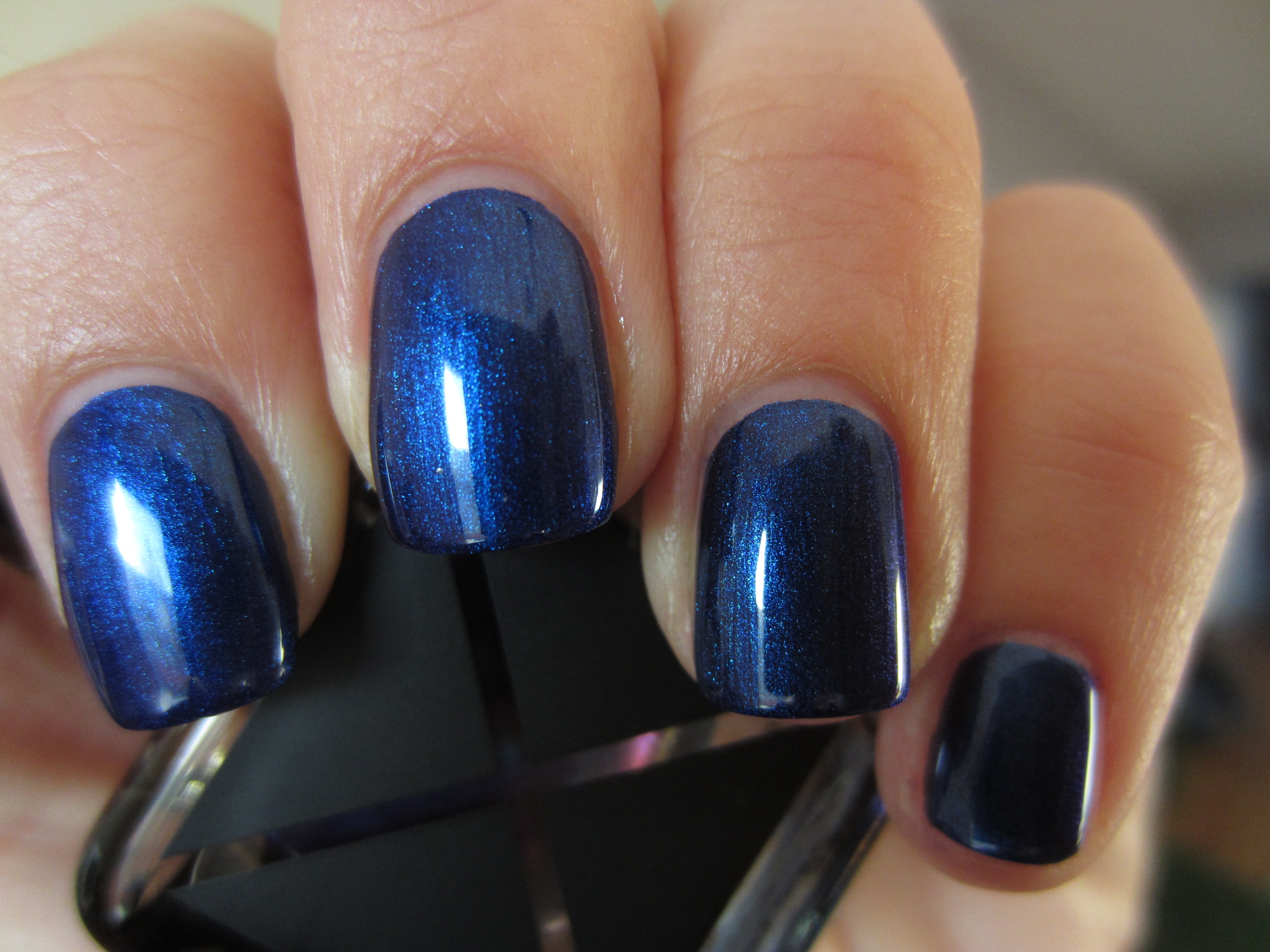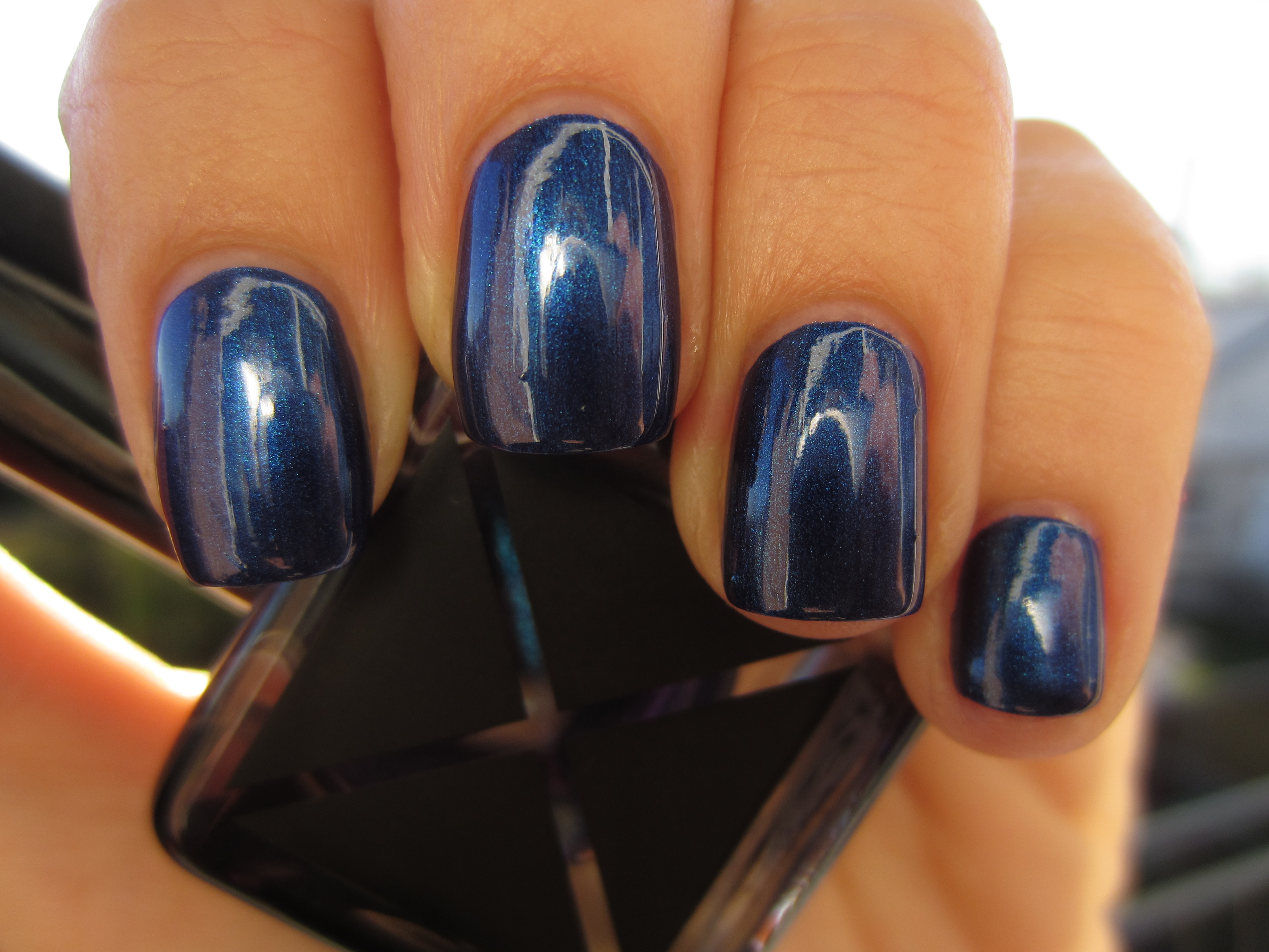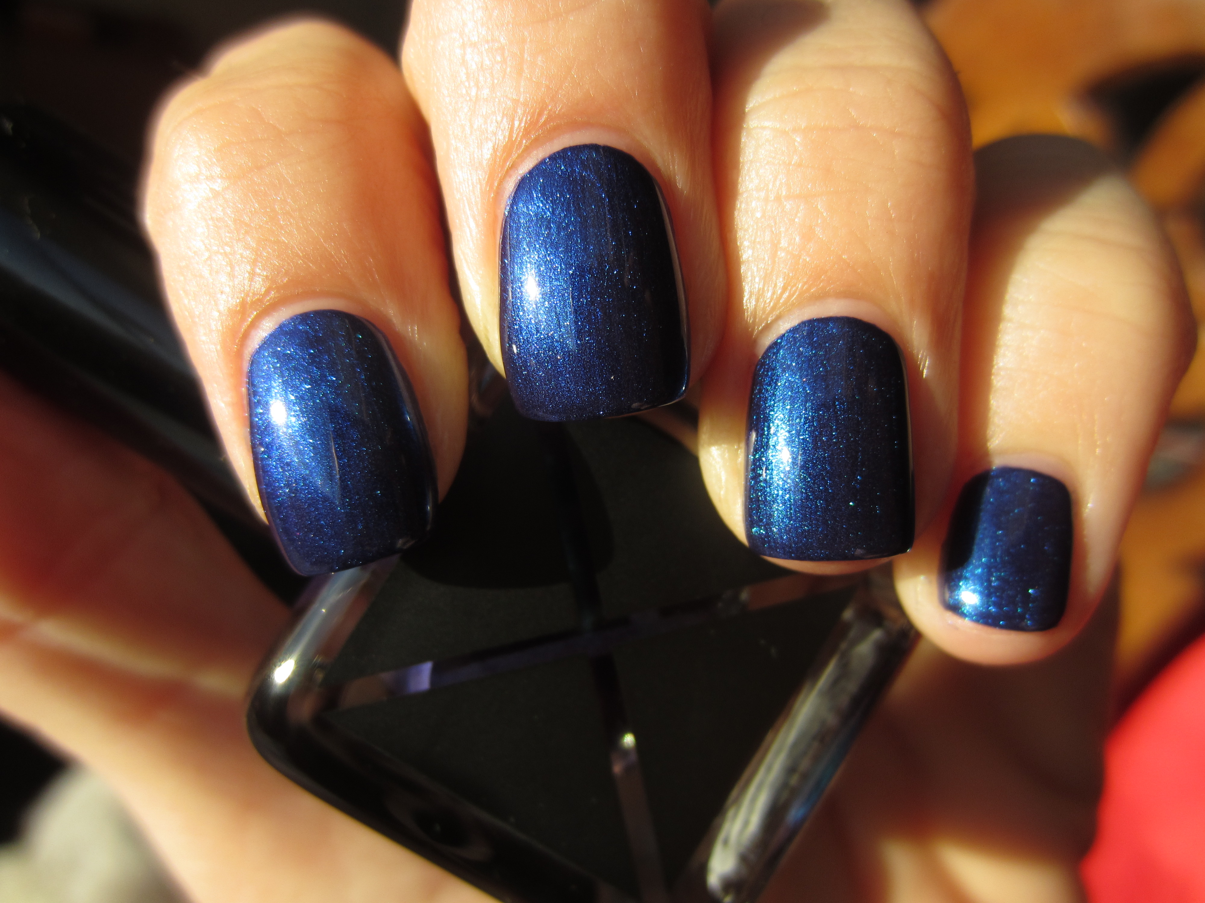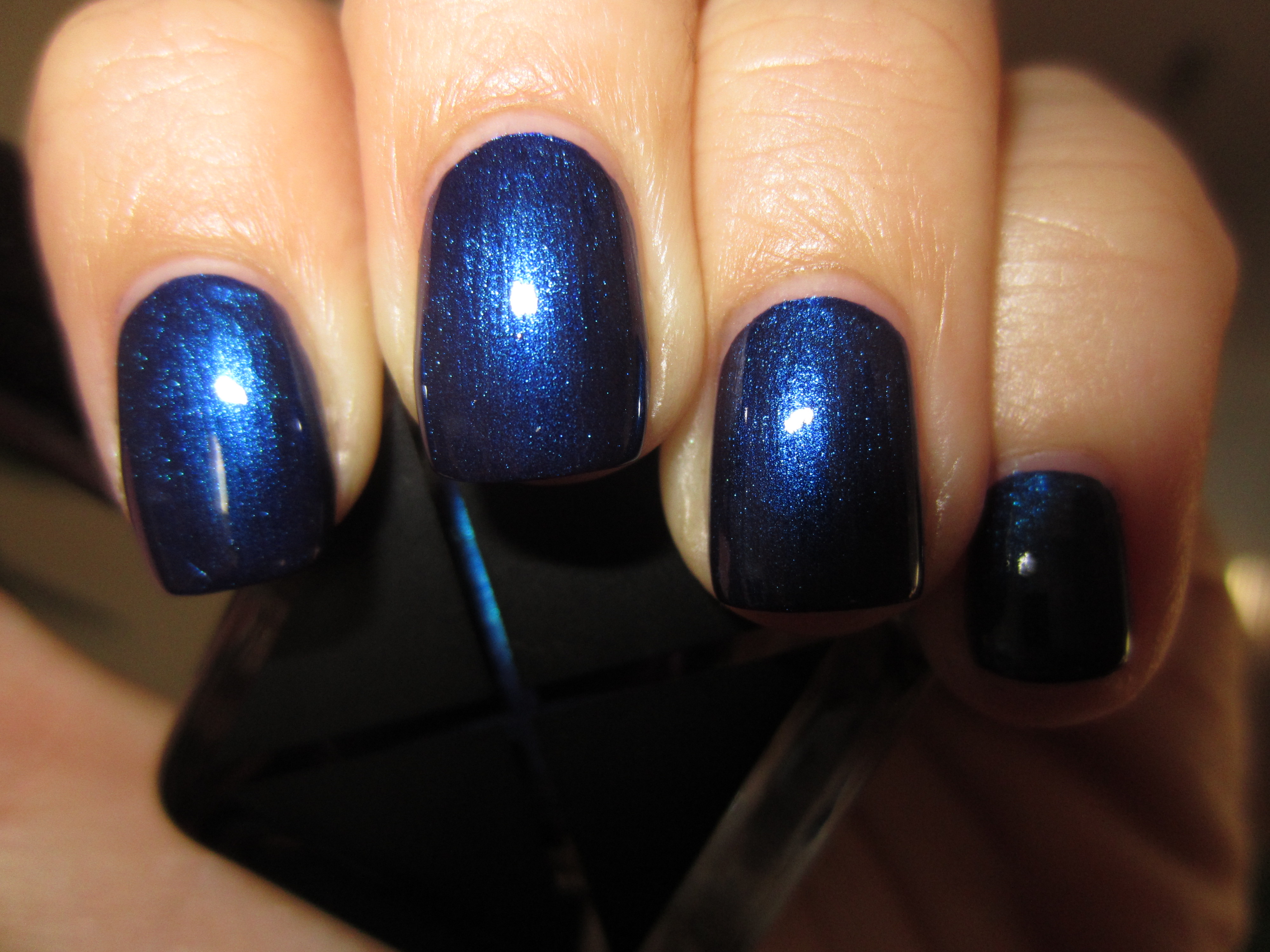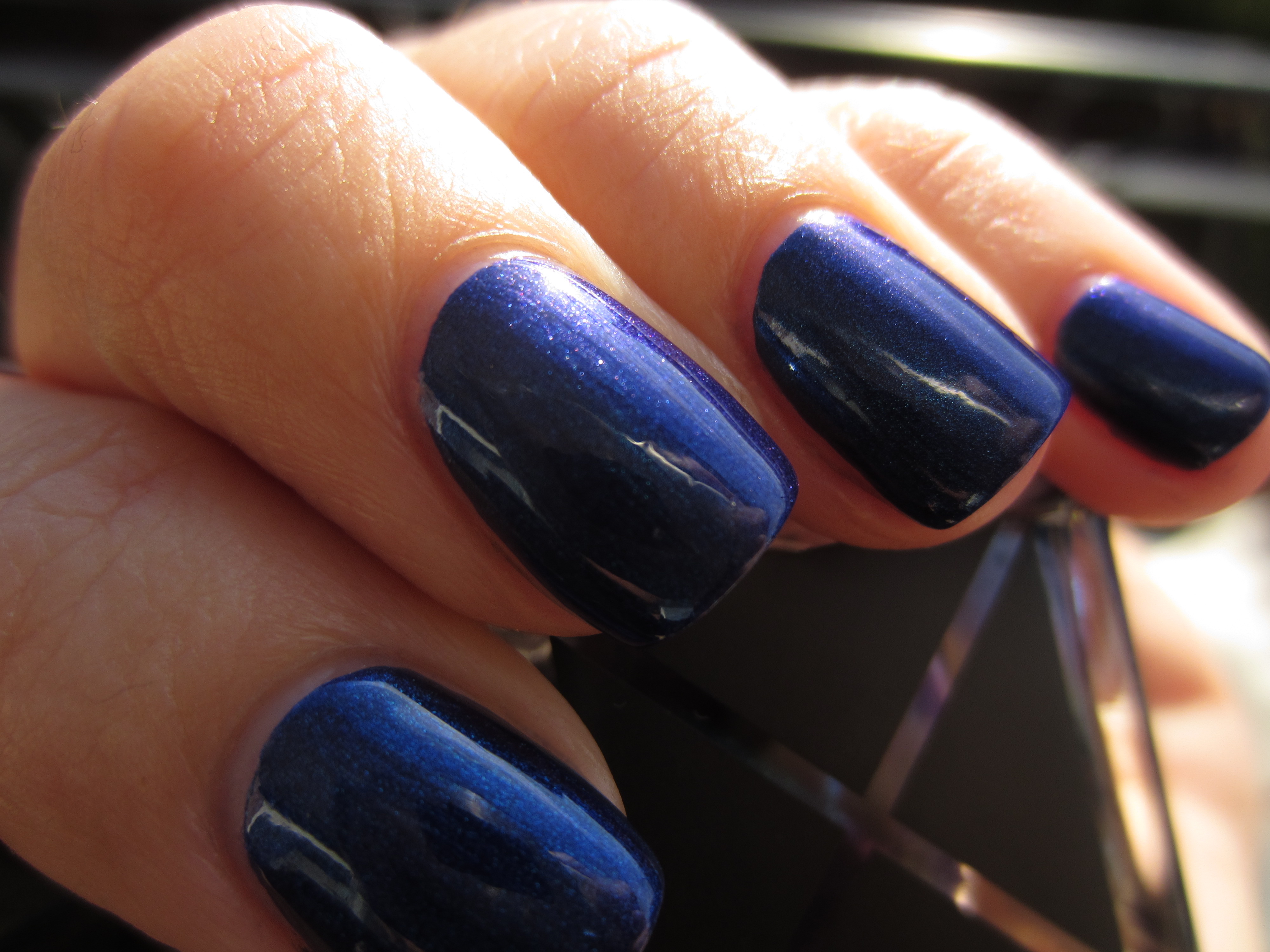 Indirect light does amazing things to the inner shimmer of this shade, and casts a midnight hybrid blue/deep purple hue to the nail tips.