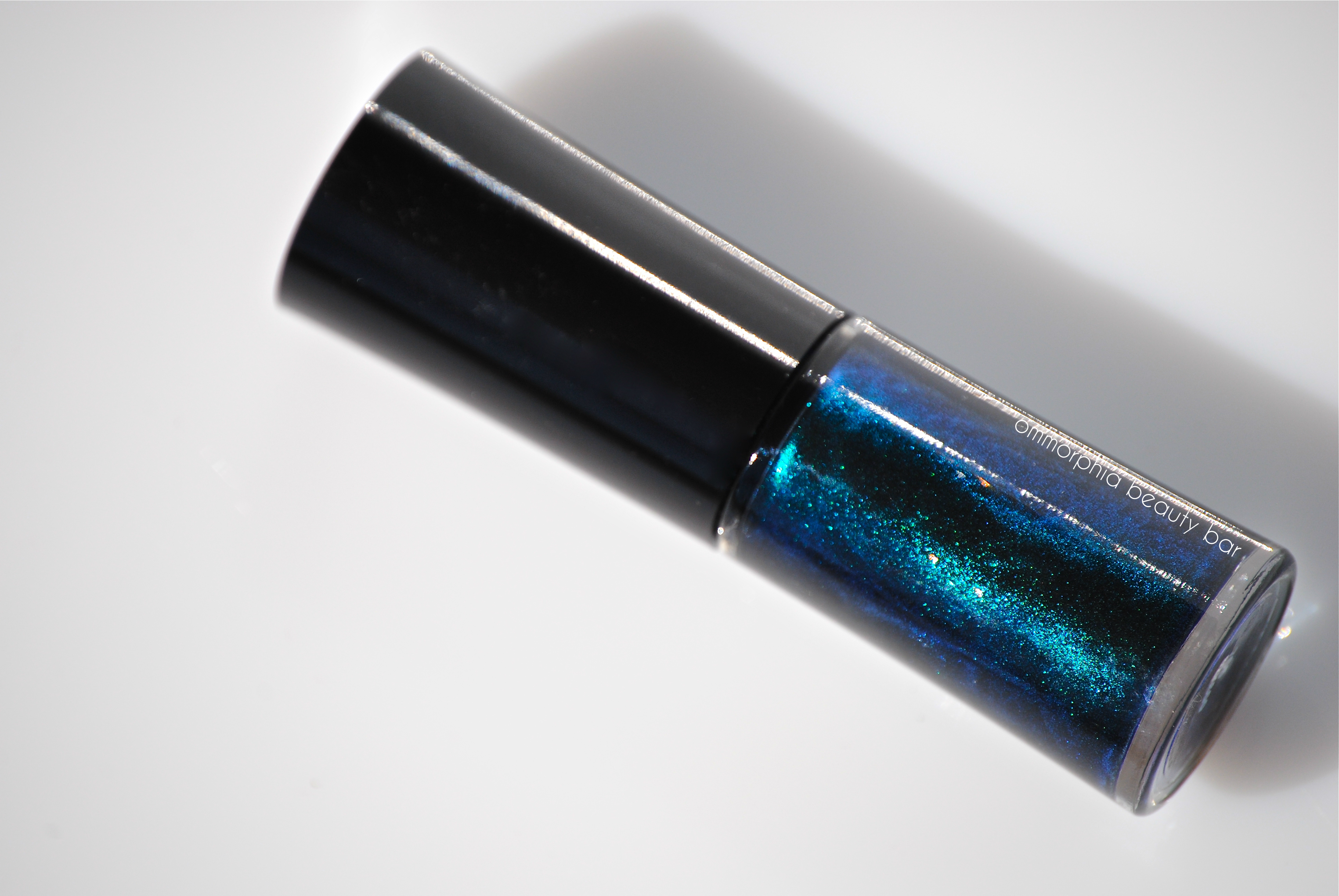 #705 Black Petrol (CAD $32.00/6 ml USD 20.00/ 0.2 fl.oz) – A blackened teal base bearing an ultra finely ground emerald and sapphire shimmer, in a formula with AMAZING viscosity & flow: this beauty stays exactly where placed, with no cuticle pooling, or dragging. The wide & flat paddle-style brush has an excellent density to the bristles, although my brush here did have a couple of wonky hairs (easily remedied by trimming, although at this price, I shouldn’t have to, right?) and I found the length of the wand very easy to use. Totally self-levelling and with a natural high-gloss shine at the finish, there’s almost an ombré effect seen in some lighting – with this shade looking darker around the edges of the nail, and a glowing center. BONUS: completely non-staining upon removal. Coats applied: 2, plus top coat