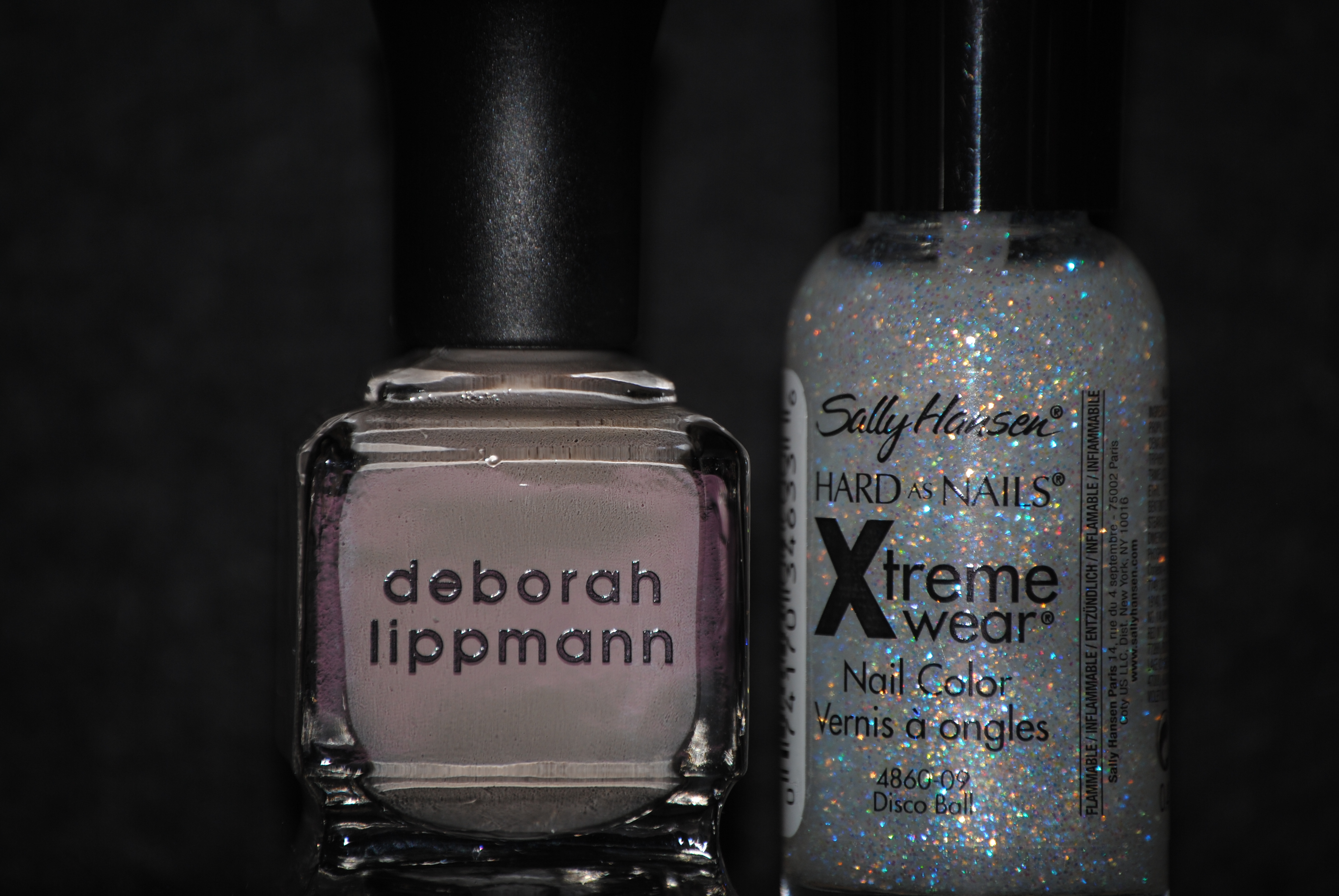 My version also gives a sly reference to Katy in another way; I used Deborah Lippmann’s polish in…you guessed it….’Waking Up In Vegas’ (I know, pretty cheesy, but it really was the best colour for this particular look….I swear!) topped with Sally Hansen’s Xtreme Wear nail color in ‘Disco Ball’, and finished off with a layer of Sèche Vite top coat.