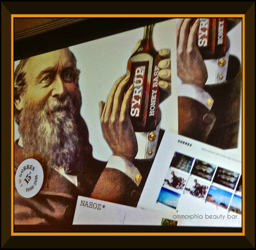 We were greeted by Lena Korres herself, who subsequently took the podium and entertained us with interesting details of the Korres brand’s history, beginning with the dream of “making creams” that founder George Korres originally wished for at 8 years of age. Fast forward 15 years later, and not only has that dream been realized, but this brand is quickly becoming a worldwide force to be reckoned with, as their reputation for providing organic & effective products, spreads. They’ve certainly come a long way from the production of their first product, a naturopathic cough syrup (see opening image).