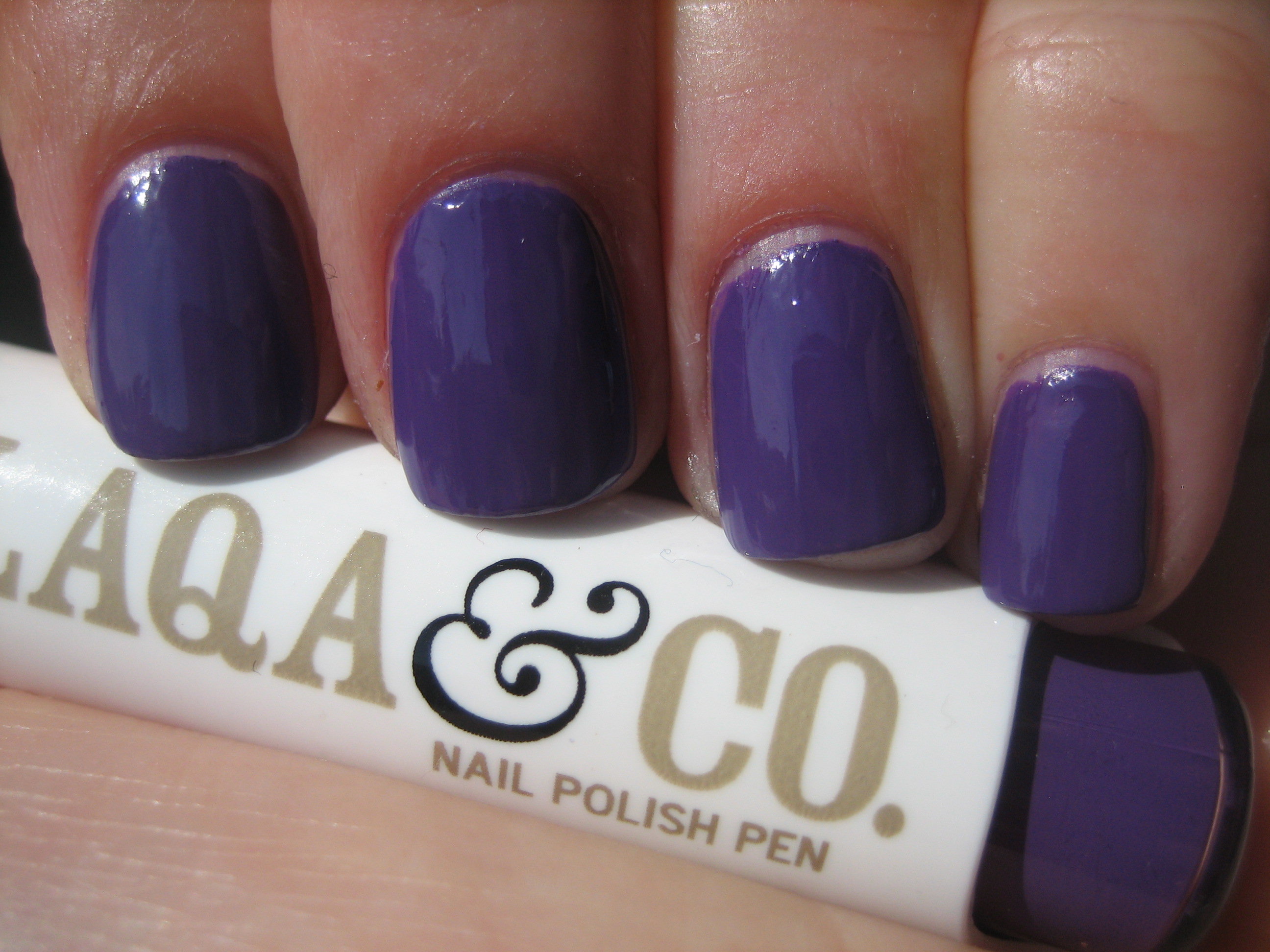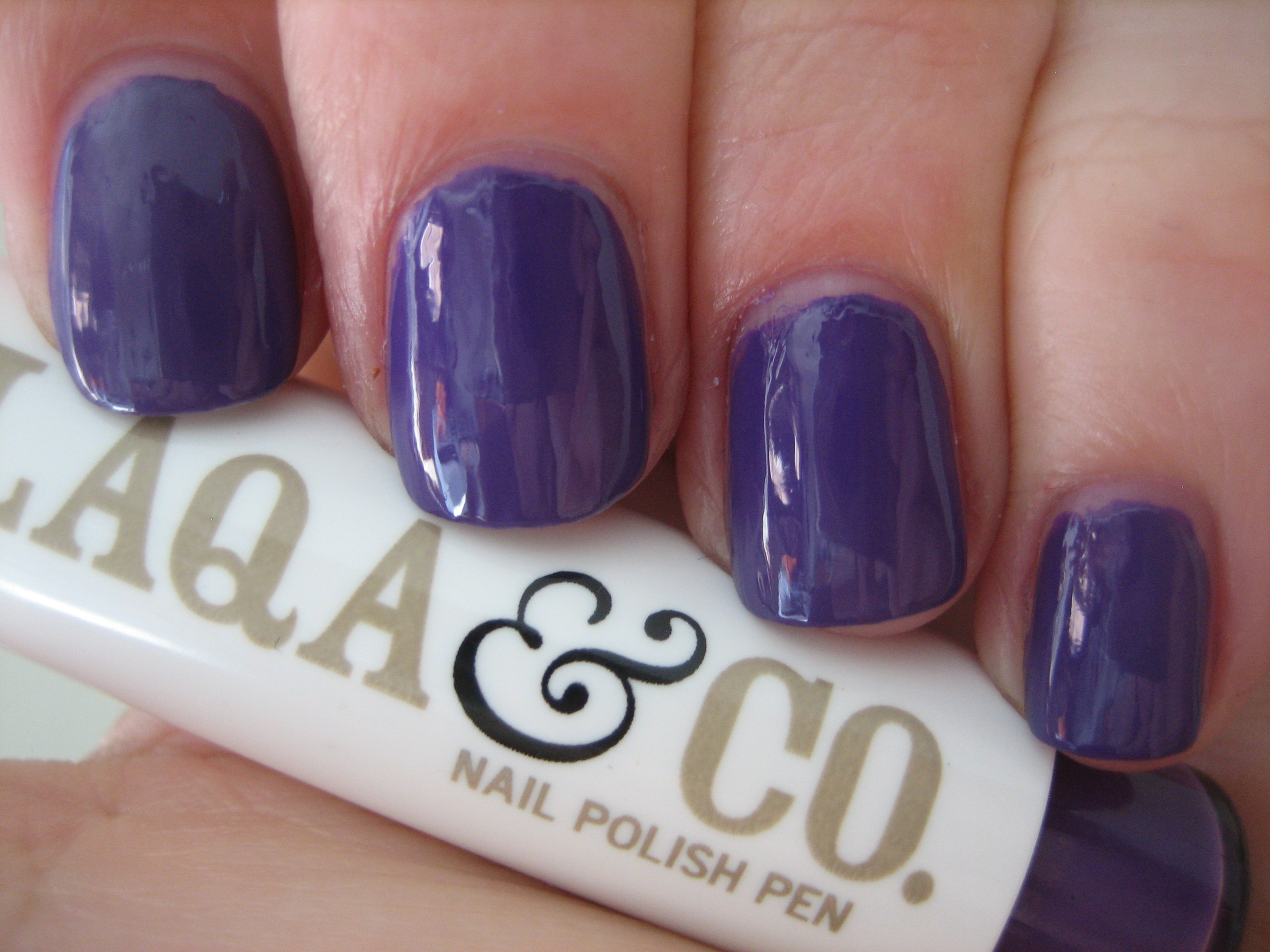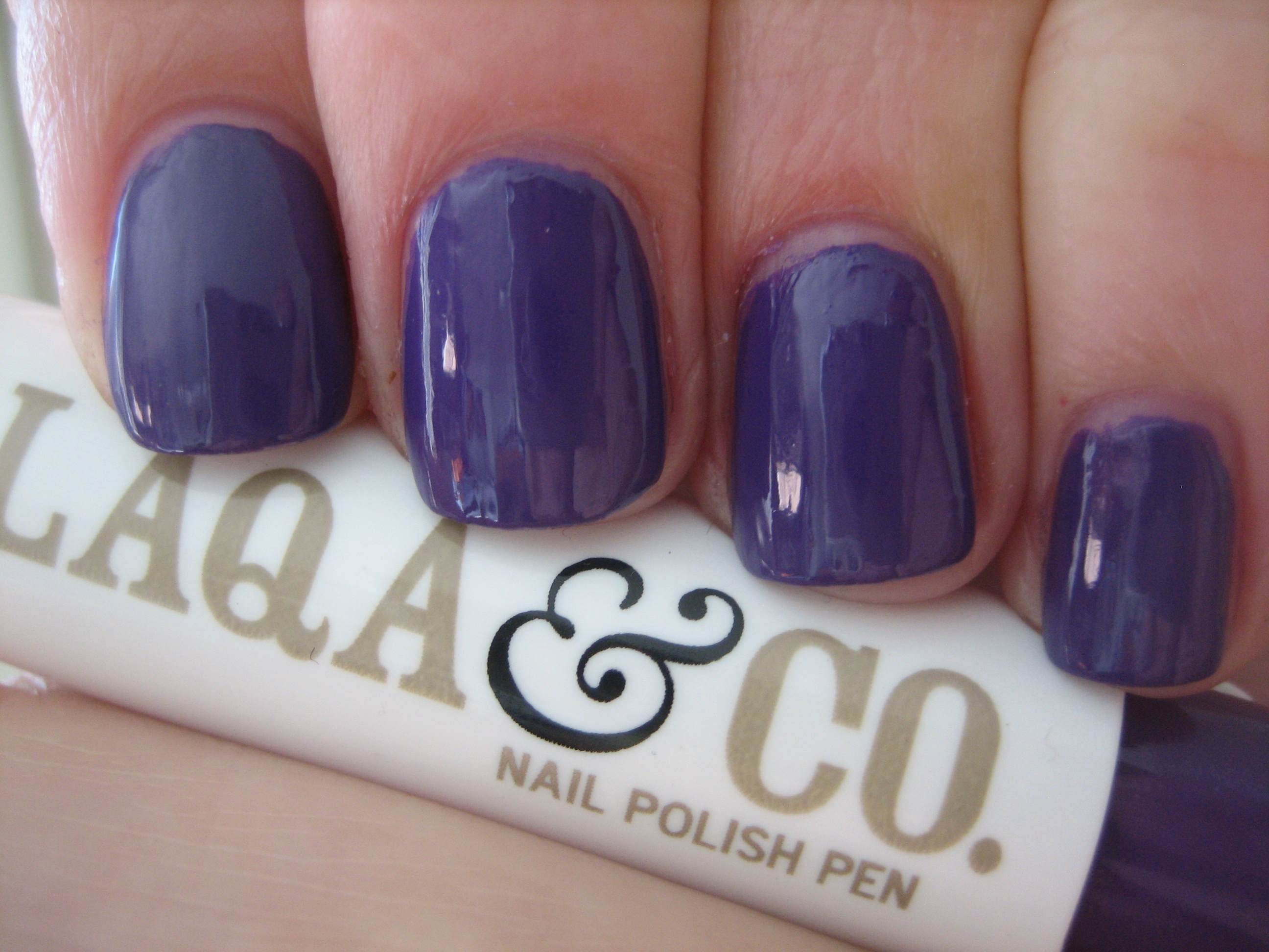 My first experience with a nail polish pen, was when I reviewed LAQA & Co.’s ‘WTF’ (here), so I had a fairly good idea of what to expect. What I was unprepared for, was how saturated in colour ‘Blurple’ would turn out to be…a pleasant surprise! True to the instructions that accompany each pen, within 8 clicks the polish flows easily to the tip and you’re set to start painting. What makes a nail polish pen unique amongst all the other lacquers out there, is its portability and ease of use. ‘Blurple’, as the name implies, is a cross between a deep purple and a rich blue and the following swatches are with Sèche Natural base coat and two coats of polish, no top coat.