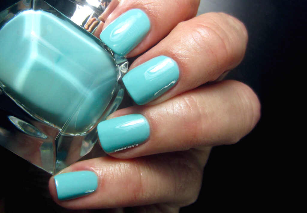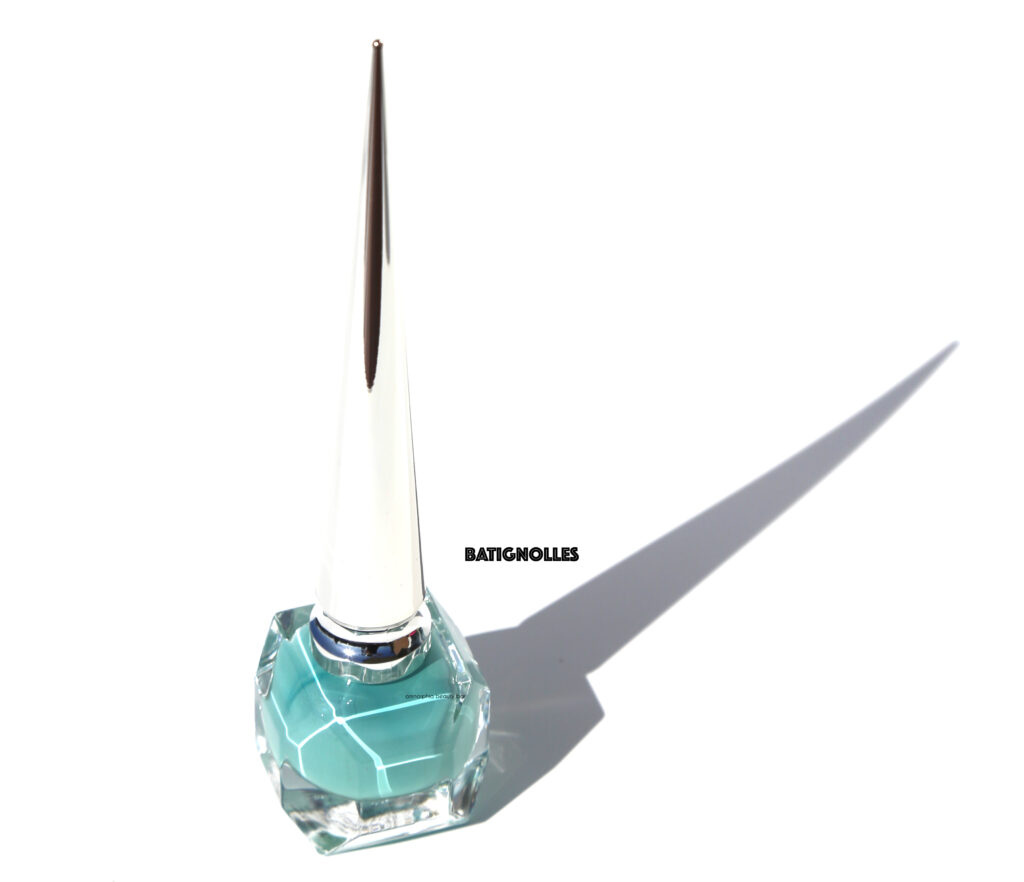 Housed in a faceted bottle (the better to showcase the colour, naturally), each comes with a tapered cap that is not only emblematic of the brand’s iconic stilettos, but inspired by calligraphy pens as well. While longer than traditional caps, it is surprisingly easy to use; the base of the cap is weighted with an excellent balance, enabling you to hold it comfortably. The brush is short and dense, with bristles that have a good splay, hugging the nail bed effortlessly during application. This intense turquoise hue is a full-on crème and lays down in a totally self-levelling way, basically opaque from the first layer and coming to an über-glossy finish. Note that it’s also non-Staining upon removal, provided base coat is worn underneath.
