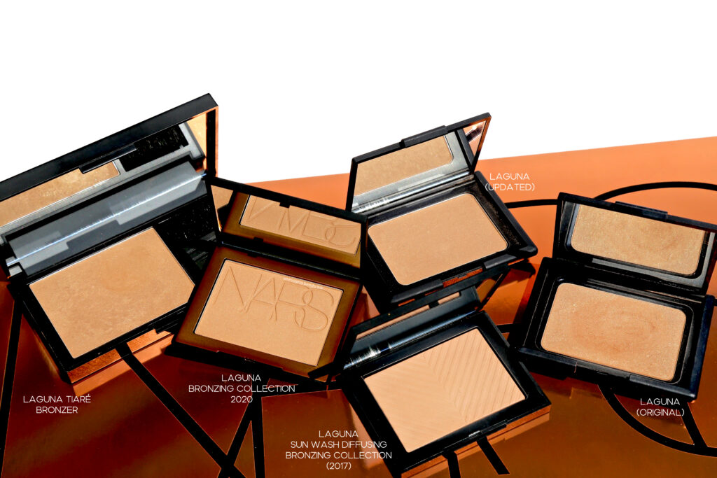 As Laguna is one of NARS’ star sellers, it seemed only fitting that I pull out a few to compare the 2020 versions to (note that Paradise Found is not pictured above, but added to the swatches below). Not included in this lineup are the Laguna Multiple and Laguna Liquid Bronzer — as I opted to stick with powder comparisons only.