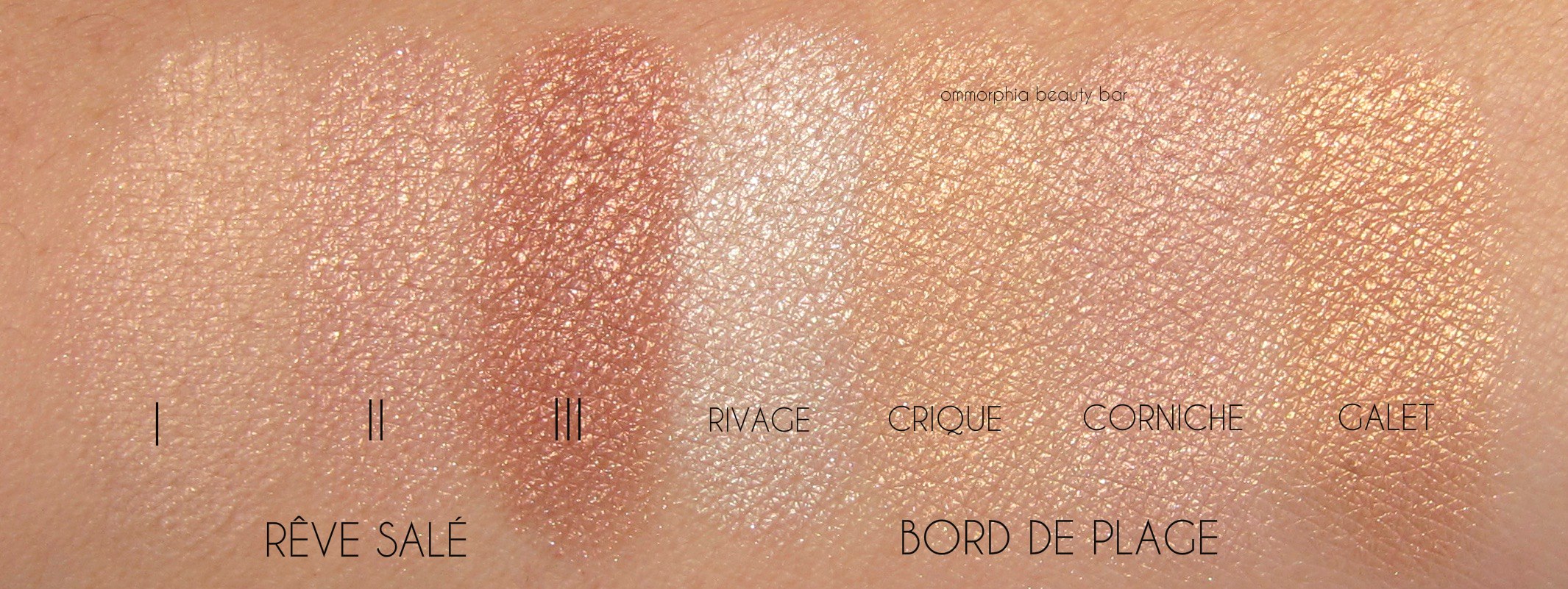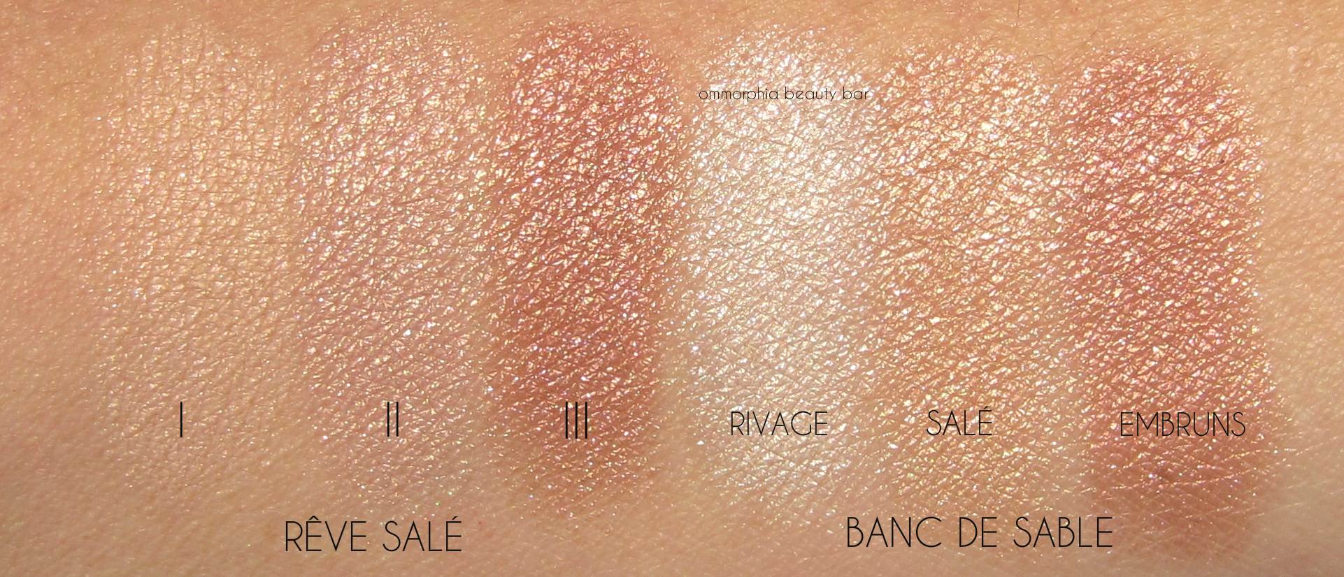 My first thought upon receiving Rêve Salé was this it was a reissue of last year’s coveted Banc de Sable, and while similar (the style of the compact case + the shades), thankfully the two are different from each other. But then I remembered Bord de Plage so I pulled that one out to see if there were any duplicates in there, but as seen in the swatches below, Rêve Salé truly stands unique.