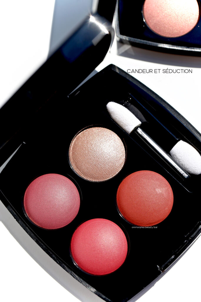 362 Candeur et Provocation, limited edition (CAN $70.00) | All four shades display excellent colour saturation and blendability, and when worn over primer the staying power is bang-on until removed, with no fading or creasing. The shades all work harmoniously together with the matte brown helping to add a grounding touch … but you can always amp things up a few notches by layering up the intense peach shade.