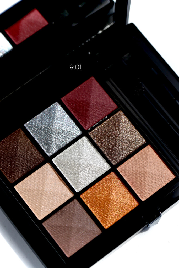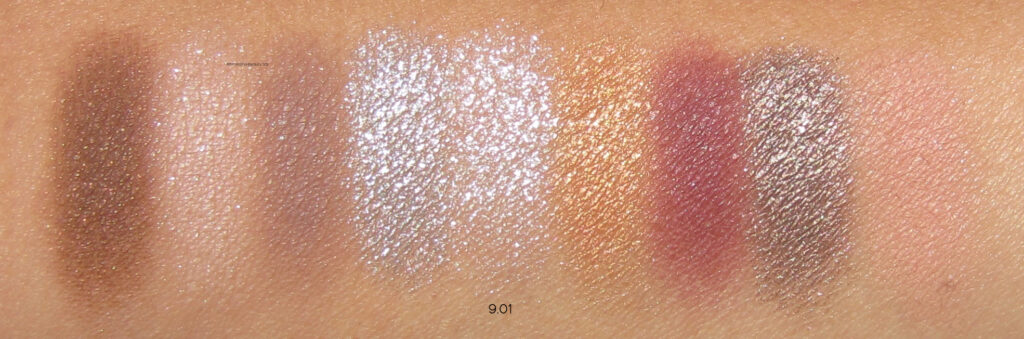 9.01 |Each palette bears a signature colour, and the deep marsala wine shade is the star here. Bearing a nice mix of cool and warm tones, this is not only the most neutral-looking palette of the bunch, but also seems a perfect grouping to transition between seasons. Both the silvery and pearly shimmers can even double as highlighters in a pinch, so yay for versatility!