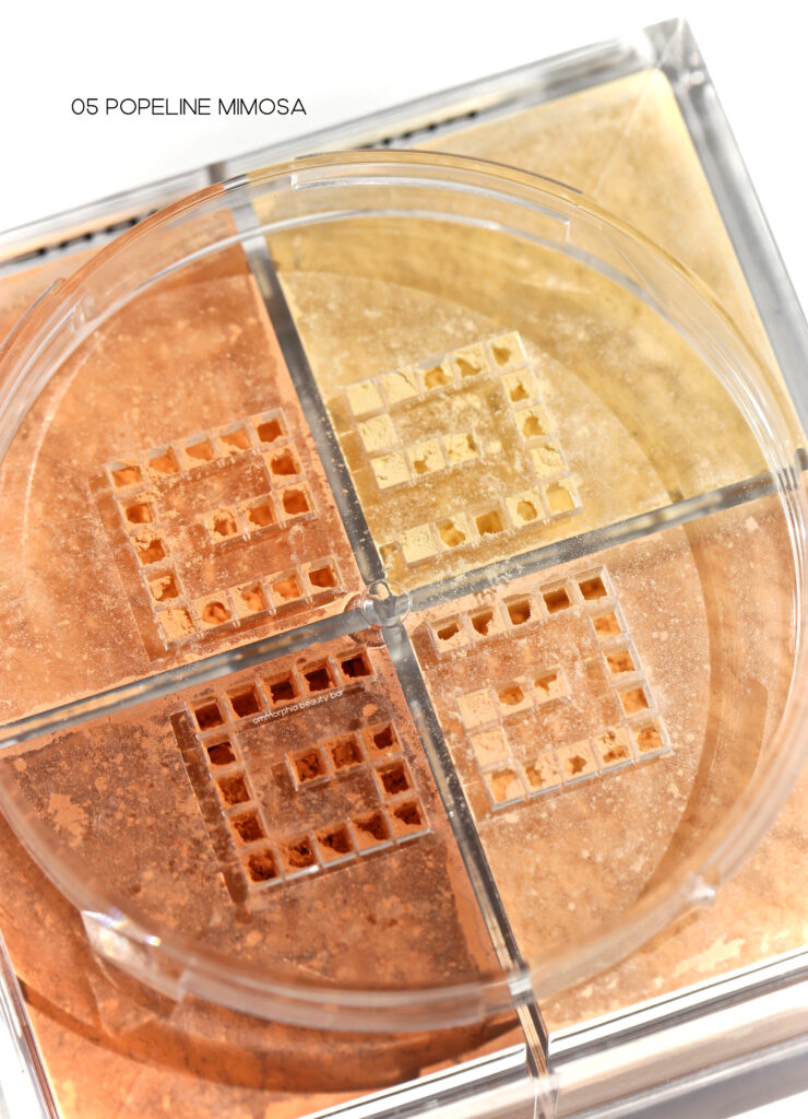 05 Popeline Mimosa |Geared towards medium to dark complexions, there are 4 ochre and orange-y shades to help detract from dark shadows and any purple-y cast to the skin. All I know, is that this is the first powder of its kind that works perfectly with my skin when it’s tanned, as in the past I’ve had to resort to using a bronzing powder which is heavier and can never provide the subtle effect that Prisme Libre offers.