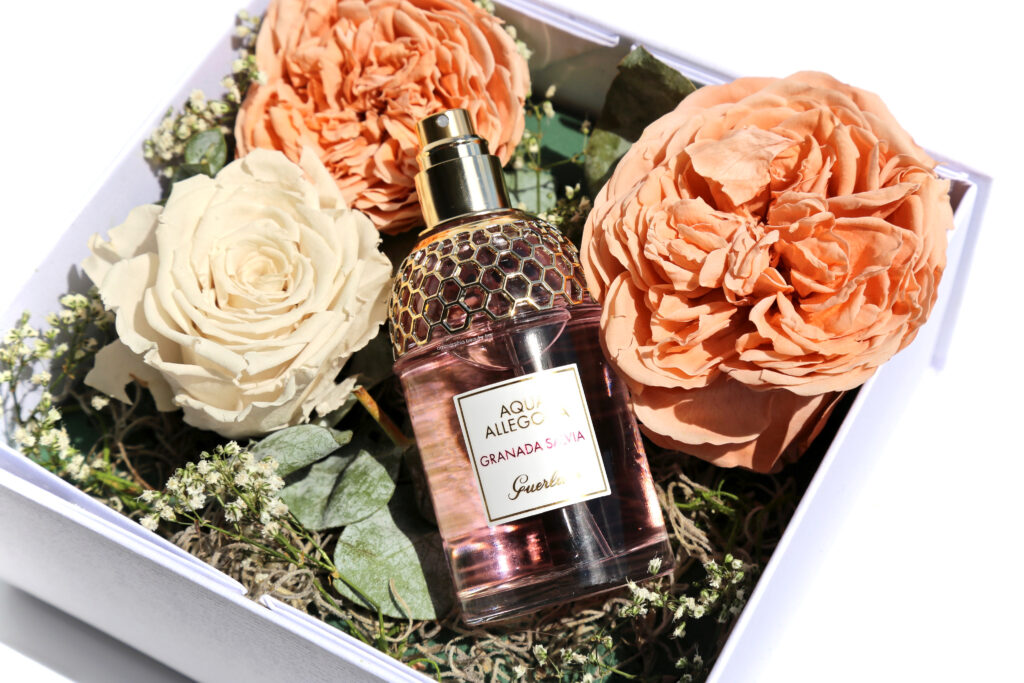 I’ve mentioned often enough that in general I’m not a fan of press mailers — mainly because of the excess packaging usually involved, but I have to give it to Guerlain for not only creating beautiful products, but in sending them along in such an eco-conscious way. The box that these two fragrances arrived in contained lovely living plants, all of which I’ve since composted, and even though I could have kept the box for storage, I opted to have it recycled. So yeah, well done, Guerlain.