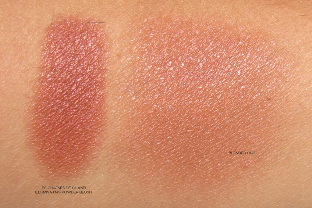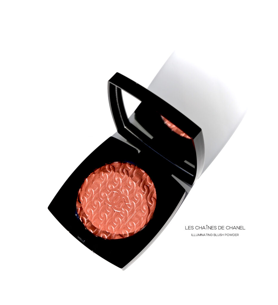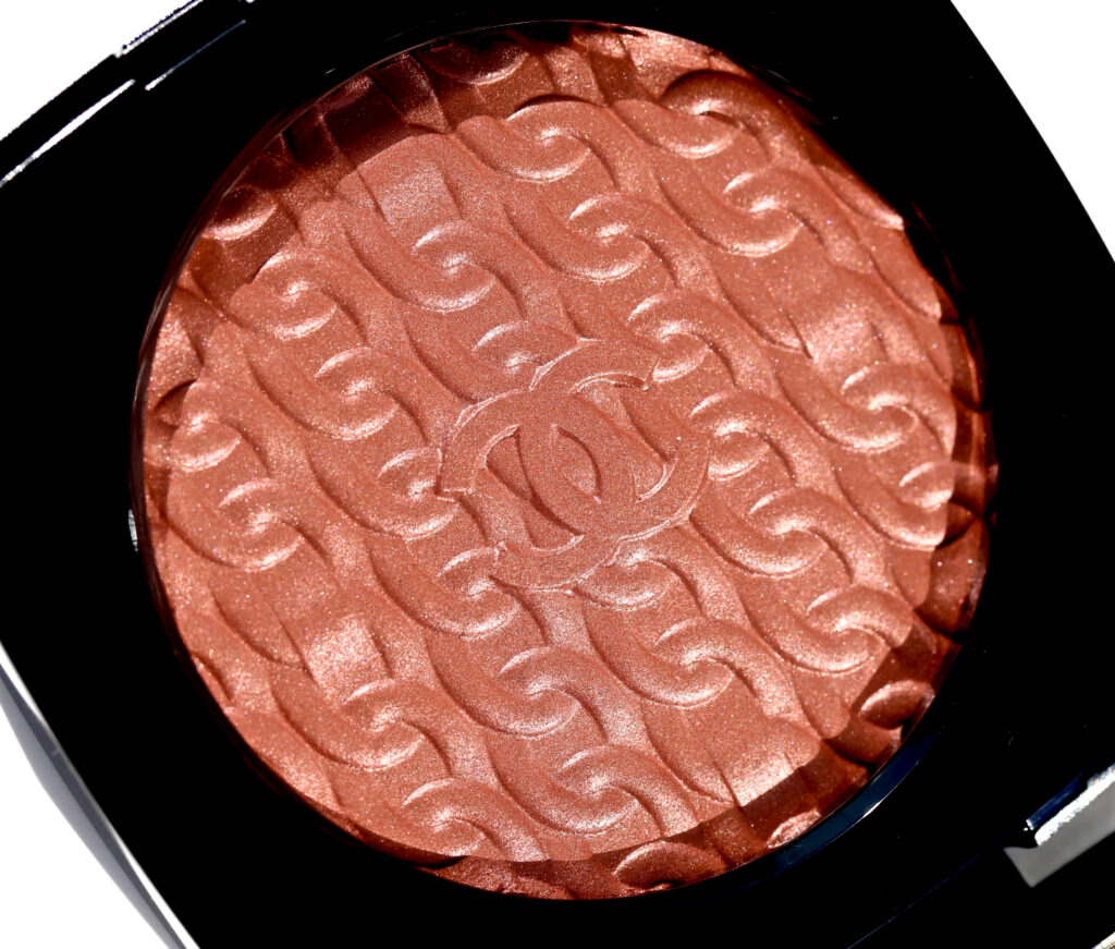 Les Chaînes de CHANEL Illuminating Powder Blush (CAN $85.00) | Housed in a black lacquered compact case with the Double C’s done in gold as well, it also comes with a full sized mirror on the inner lid and a demilune natural-bristled brush. The embossed chain motif is absolutely breathtaking –and heartbreaking to mar by using — but I took one for the team (but not before taking a bajillion pictures first). The texture is divine: creamy smooth, easily to blend out, and coming to a luminous finish upon the skin. The ultra fine shimmer adds a lovely radiant touch and while the blush itself is definitely pigmented, you can still sheer it out for a lighter wash of colour. Staying power when worn over primer and/or foundation is excellent.