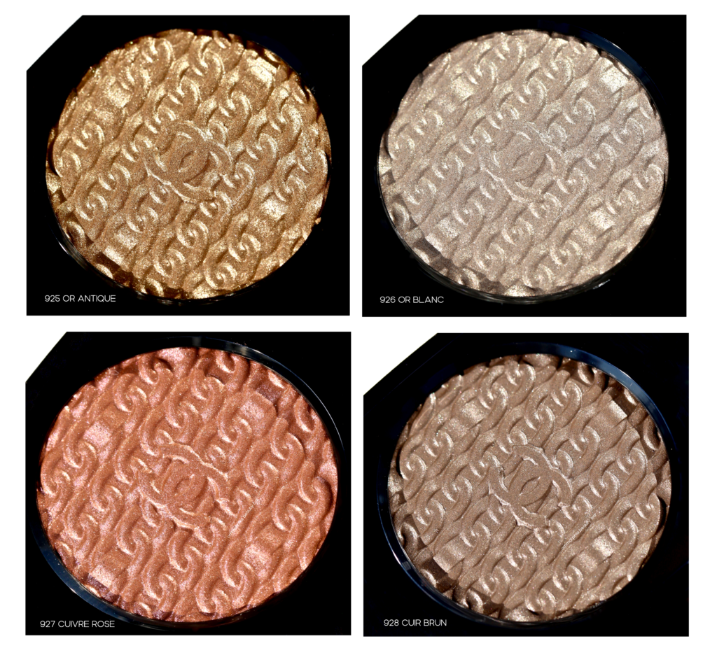 Ombre Première (CAN $50.00/each) | Housed in black lacquered casings with the Double C’s done in gold, these four opulent shades bear the chain pattern embossed on their surface. The ultra fine texture applies buttery soft and can be worn as a sheer wash of colour, or easily built up for more intensity. For added drama, each shade can also be applied with a dampened brush — but do stick to one small part of the pan for that in order to preserve the dry integrity of the rest of the powder. The pearly finish displays a complex shimmer — and is utterly gorgeous. Staying power over primer is excellent, staying true without fading until removed.