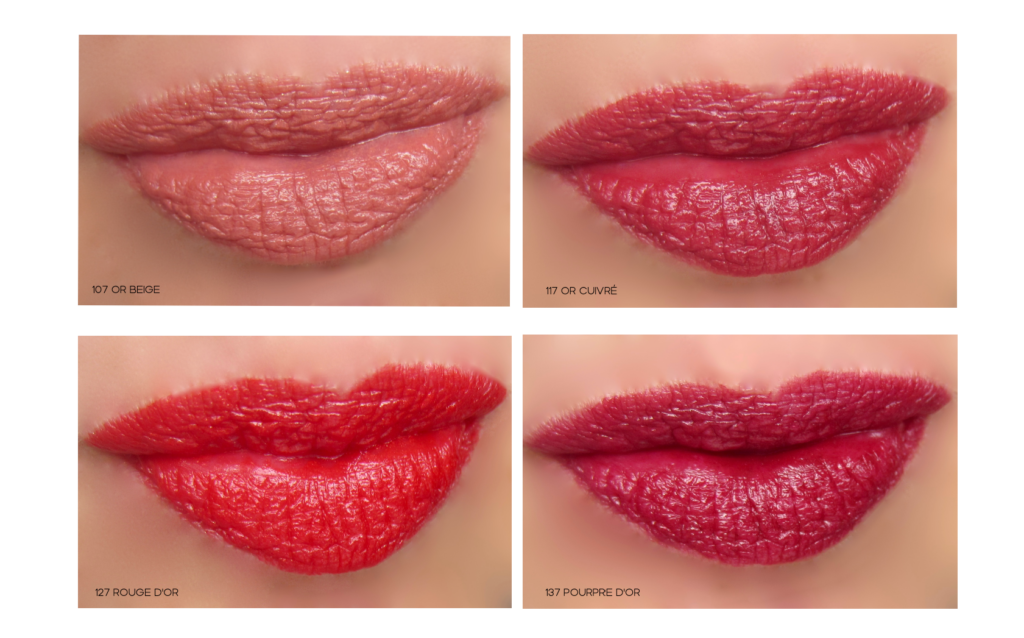 - 127 Rouge d’Or – radiant gold flecked red (aka: the most perfect red)