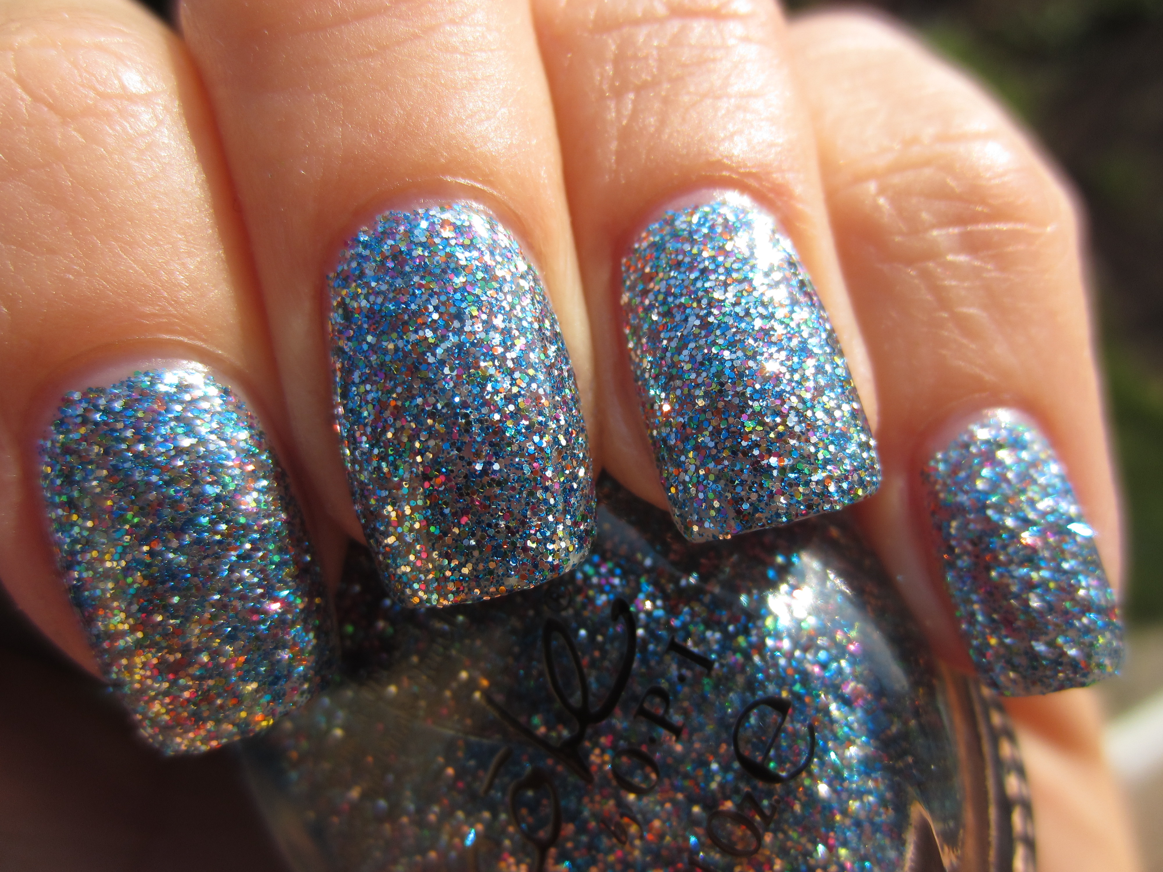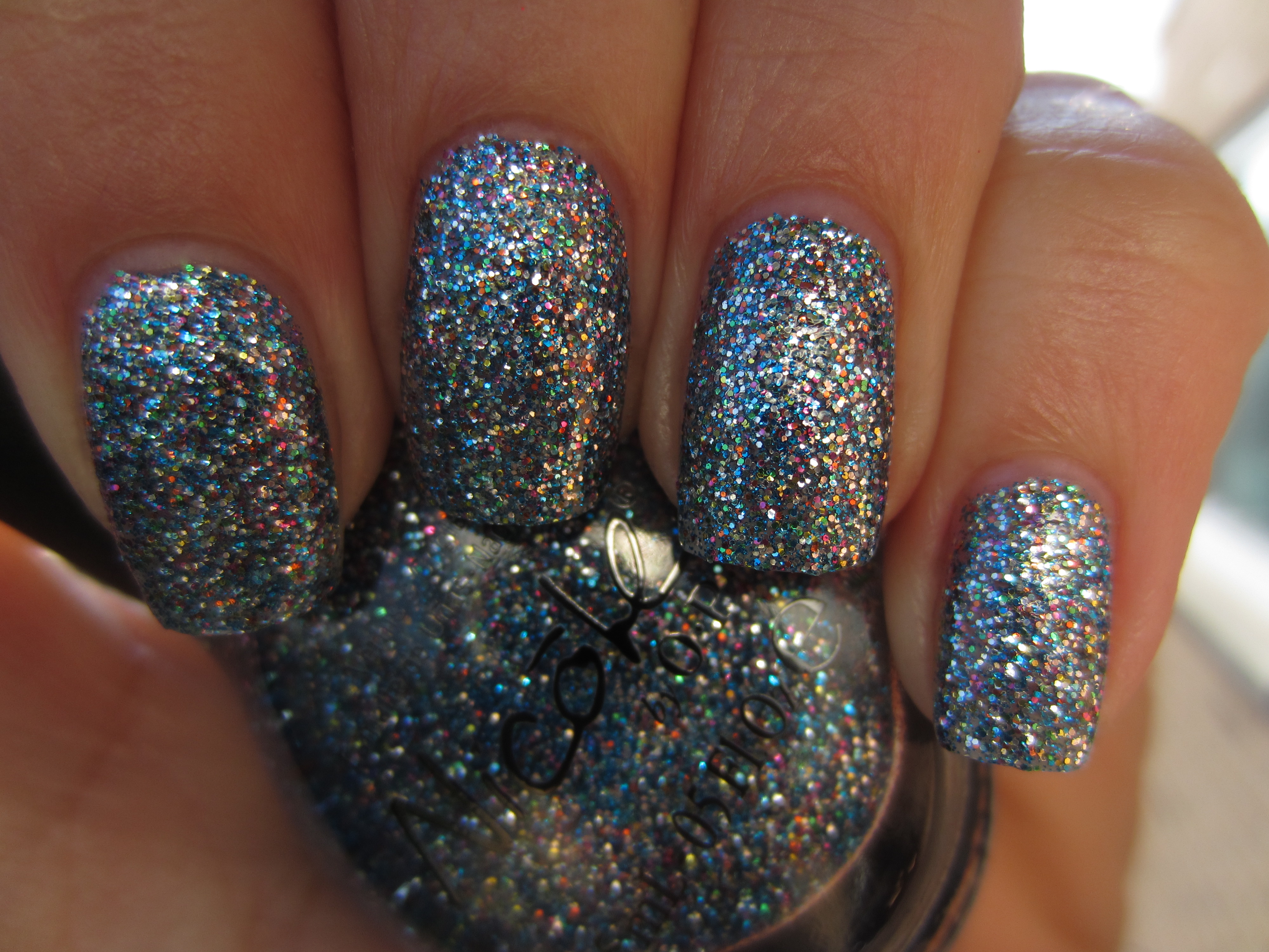 A final view taken with flash reveals a hint of the natural nail underneath, but also emphasizes this shade’s amazing sparkle.