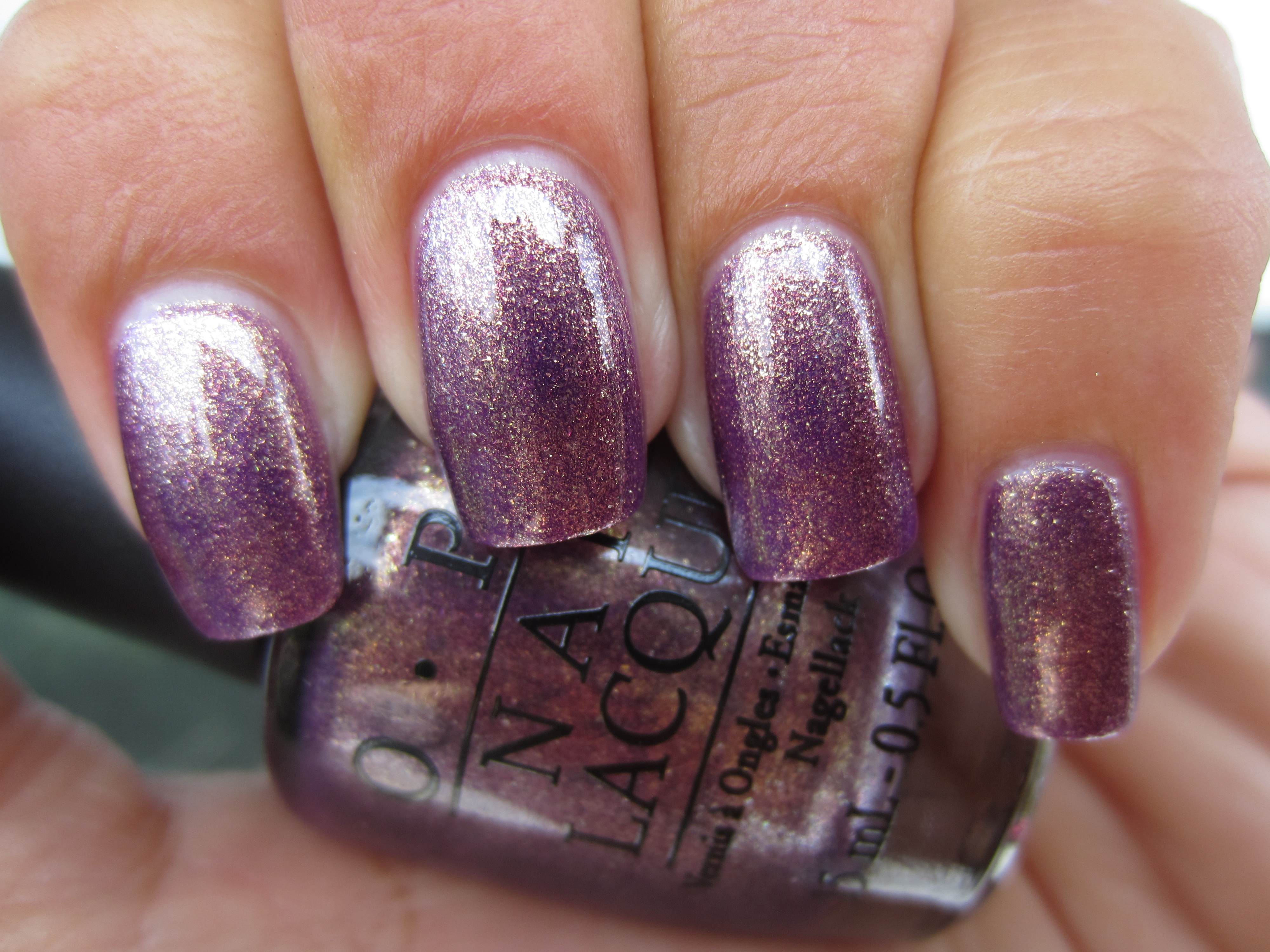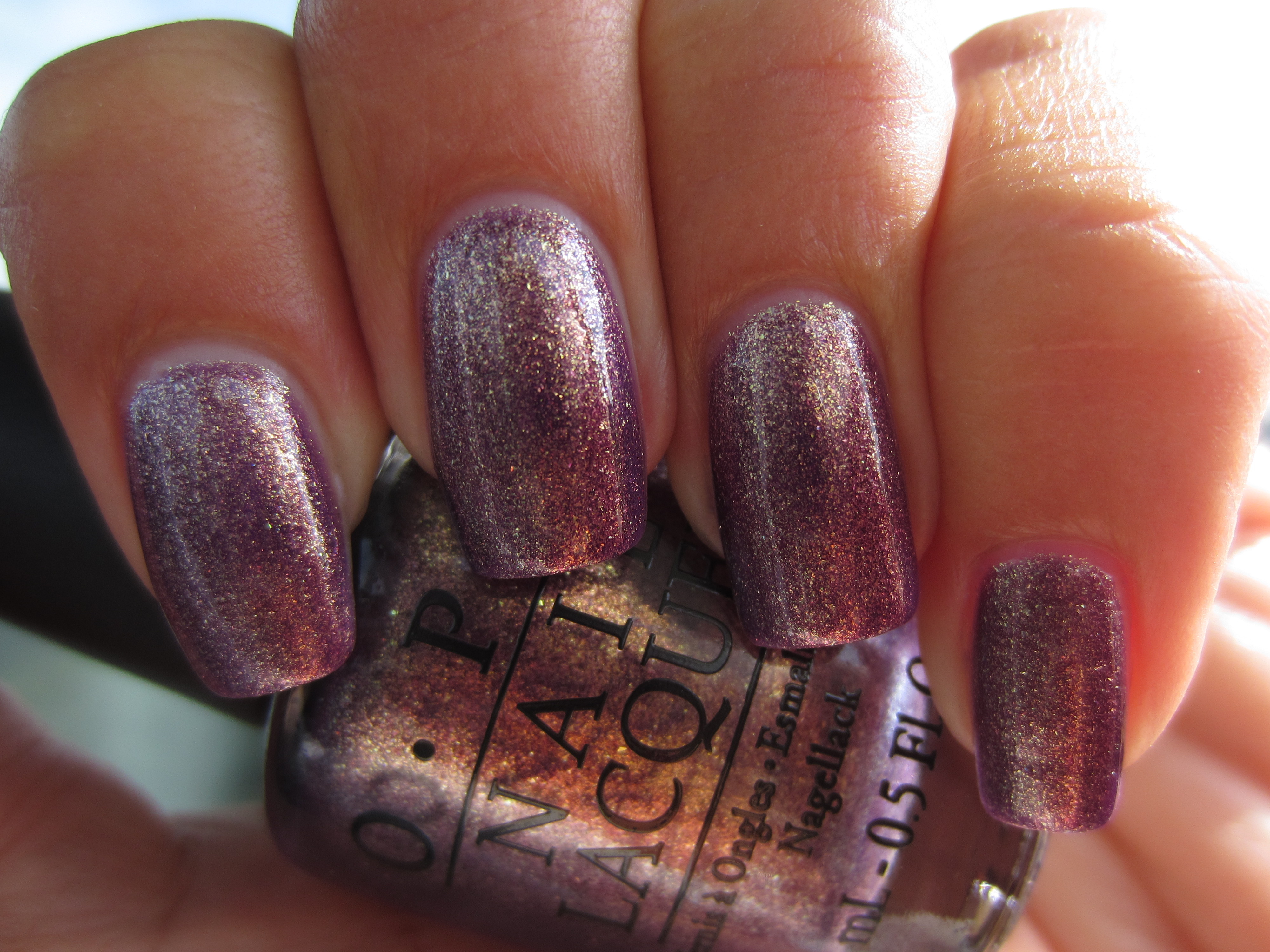 I love the ombré effect of this view taken in full sun, with the shimmer dancing playfully along the upper part of the nail, leaving the rest of nail bathed in a rich purple hue.