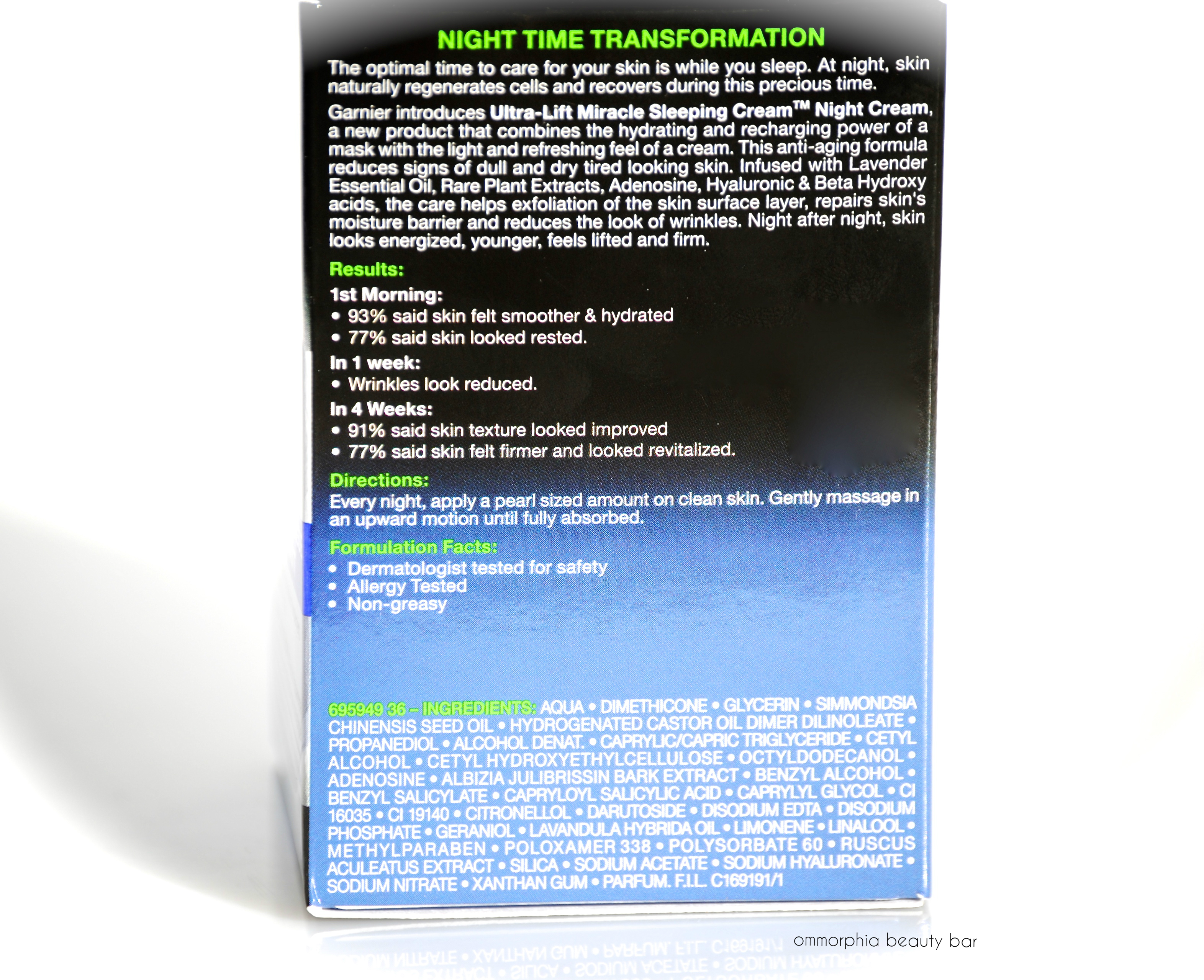 Garnier | Ultra-Lift Miracle Sleeping Cream™, Night Cream (ingredients listing)