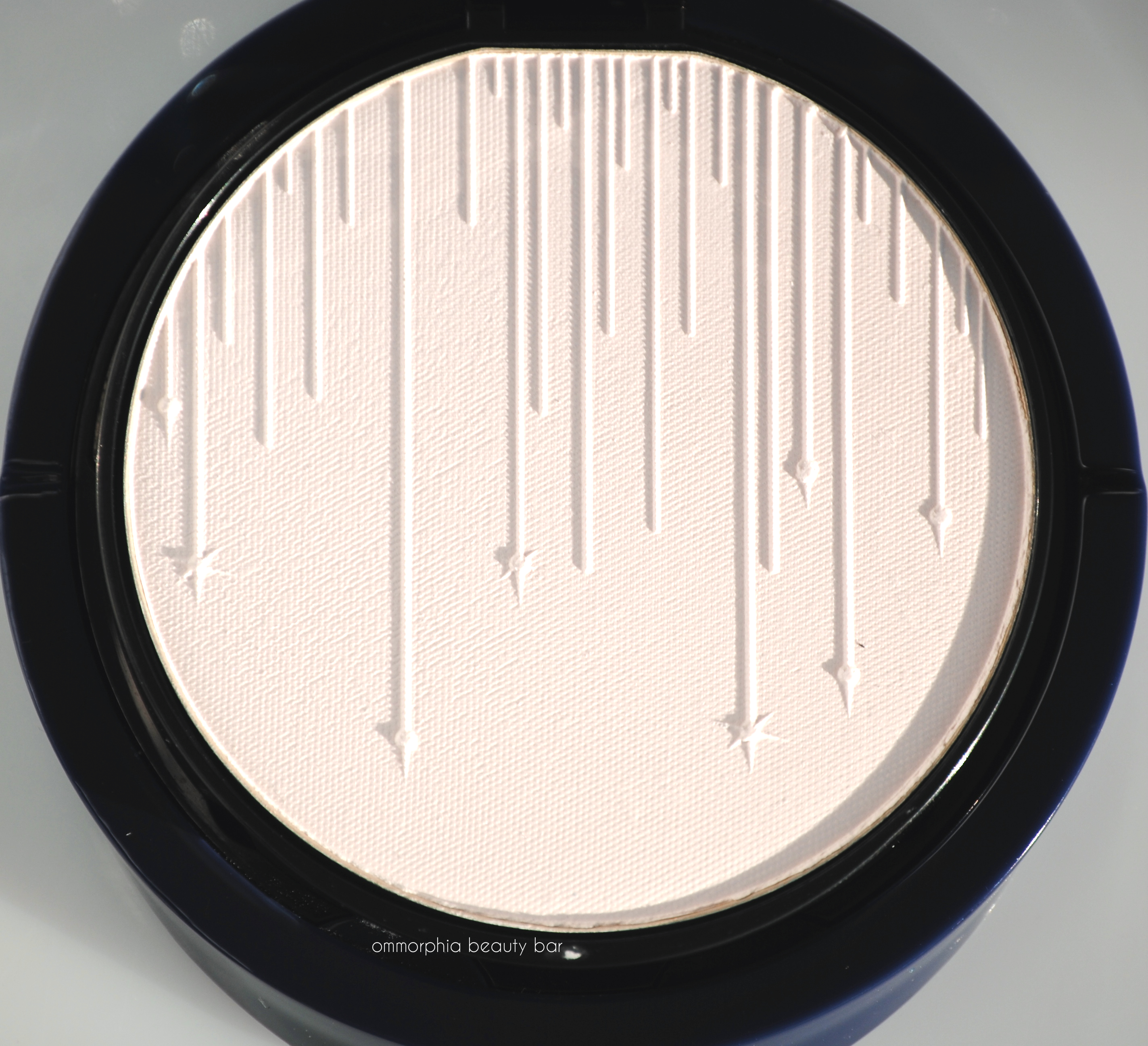 Orient Excess Palette face powder, limited edition | With a star constellation pattern embossed on its surface, this luminous face powder is so exquisitely and finely milled, that it almost disappears into the skin. Meant to impart a “Winter glow” (those words make me think of Imperial Russia, palaces, and moonlit carriage rides … so different from the “Winter Windburn” I’ve often experienced here), this porcelain shade actually applies quite translucently and can be easily buffed into the skin as a finishing touch. I detect the slightest hint of pale peach that lends this powder a bit of warmth, making it wearable for fair-medium complexions as well, although darker skinned types might find this shade a touch ashy. While there is no detectable shimmer, there does seem to be the most subtle gleam (but you really need to be angled properly and in the right lighting to actually catch it), which makes this powder ideal for those looking for an understated highlighter. Staying power is hard to judge (as is trying to capture this shade in photos – the swatches below were applied with a very heavy hand) due to its ultra-fine texture, but I experience no oxidation throughout the wearing.