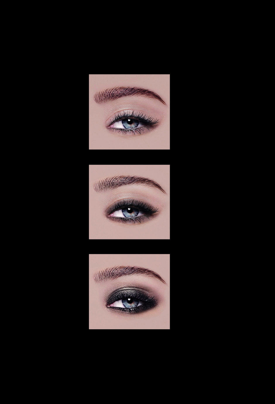 The texture of each shade is absolutely stellar – no chalkiness or powdery residue visible when swirling my brushes across any of them them. The top right shade is quite subtle on me, but is perfect to be used on the inner eye corner or as a brow bone highlighter. All are easily buildable, and there’s excellent colour saturation even with the first swipe. The darkest shade is surprisingly not as intense as what you see in the pan, and gives a sooty charcoal-like effect (perfect for creating a smokey eye look). I found that every single one of these hues not only compliments each other so perfectly – which translates as numerous colour combinations to play with – but all blend so easily as well. Staying power is excellent: over primed lids, I was able to get a minimum of 10 hours wear, without any signs of fading or creasing.