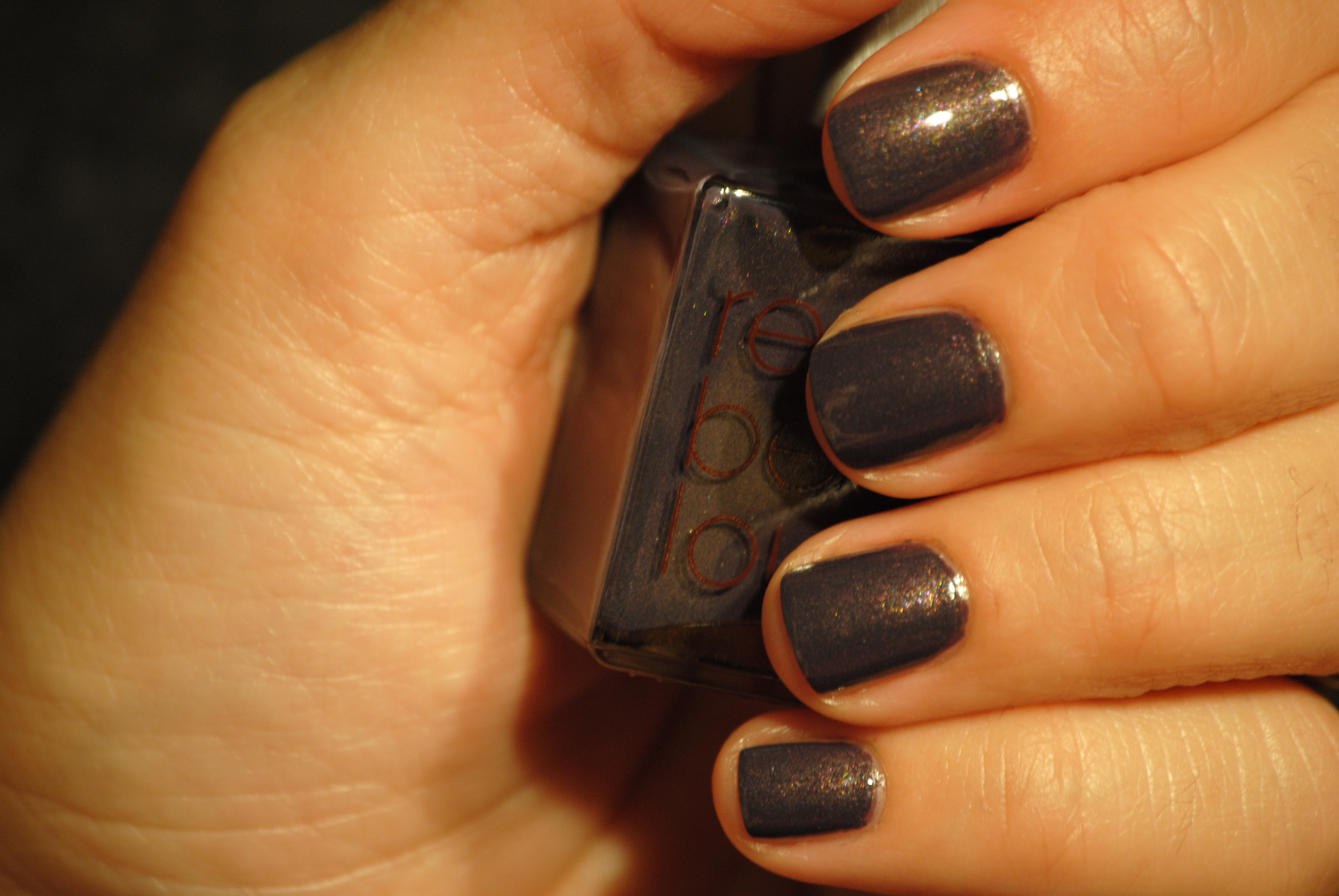 May I say how much I love any shade of mauve nail polish? ‘Catherine’, like practically every other mauve/dusky purple nail polish I have ever seen or tried on, seems to have the ability to suit every skin tone. I love the muted aubergine base of this colour and I find that the addition of the very fine multi-tonal shimmer takes it to a whole other level of deep purple. This polish applied very smoothly as well, and the flow was excellent. In the closeups, the camera has clearly picked up the pink and aqua micro shimmer (although the above picture has somewhat skewed the true colour of this polish) and even to the naked eye, these flecks are apparent.