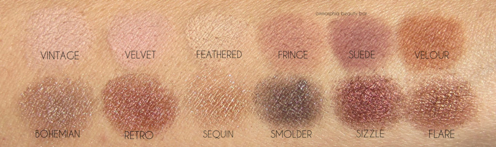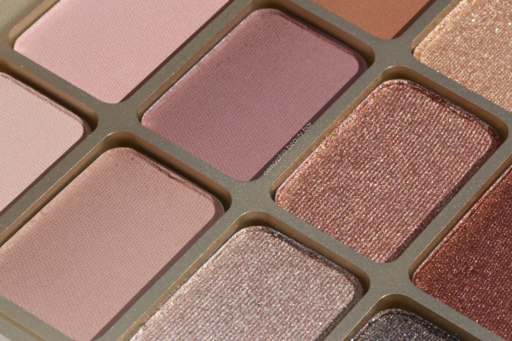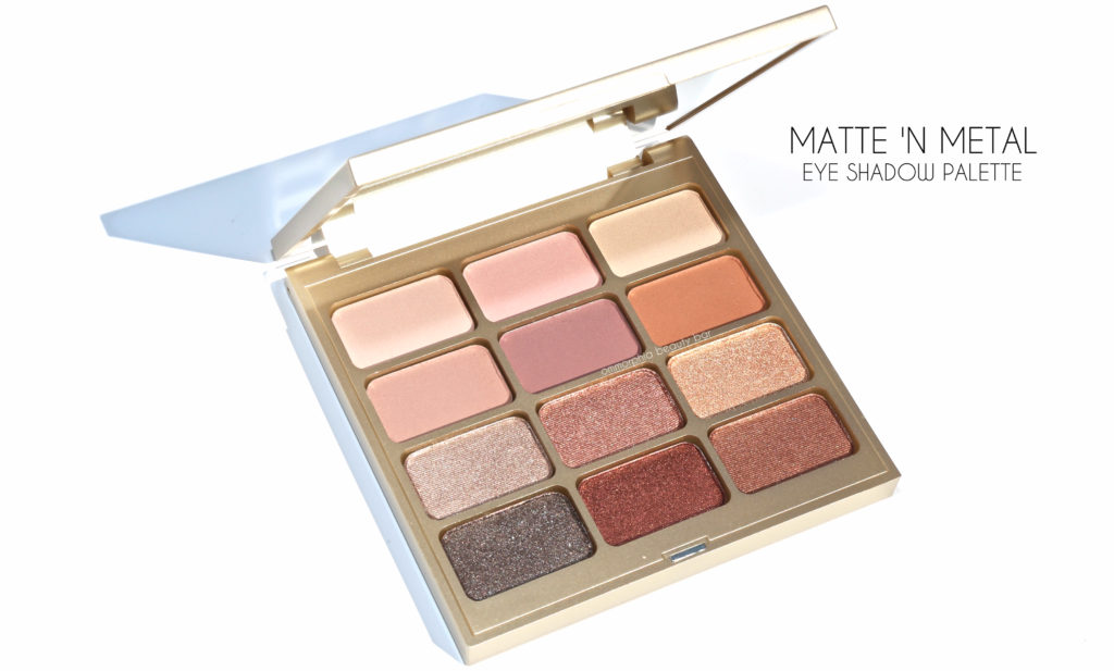 Matte ‘N Metal Eye Shadow Palette (CAN $64.00) | Housed in a sturdy gold toned square plastic compact with a fun checkerboard pattern on the lid (which also has a large mirror on the inside, and no dinky brush which would only take up space), this palette contains 12 luxurious shades: 6 matte and 6 metallic. All are sized large enough that you can easily pick up the colour, regardless of brush size, and display minimal fall down during application. The mattes are richly pigmented and also make excellent transition shades, while the metallics have a shimmer that’s complex enough to make things interesting, but not to the point that they come off as blinding. The three lighter metallic hues (3rd row from the top) have a more subtle payoff than the deeper ones, making them versatile enough to be used either all over the eye or as inner corner highlight. Staying power over primer is quite good, staying put without fading throughout the wearing.