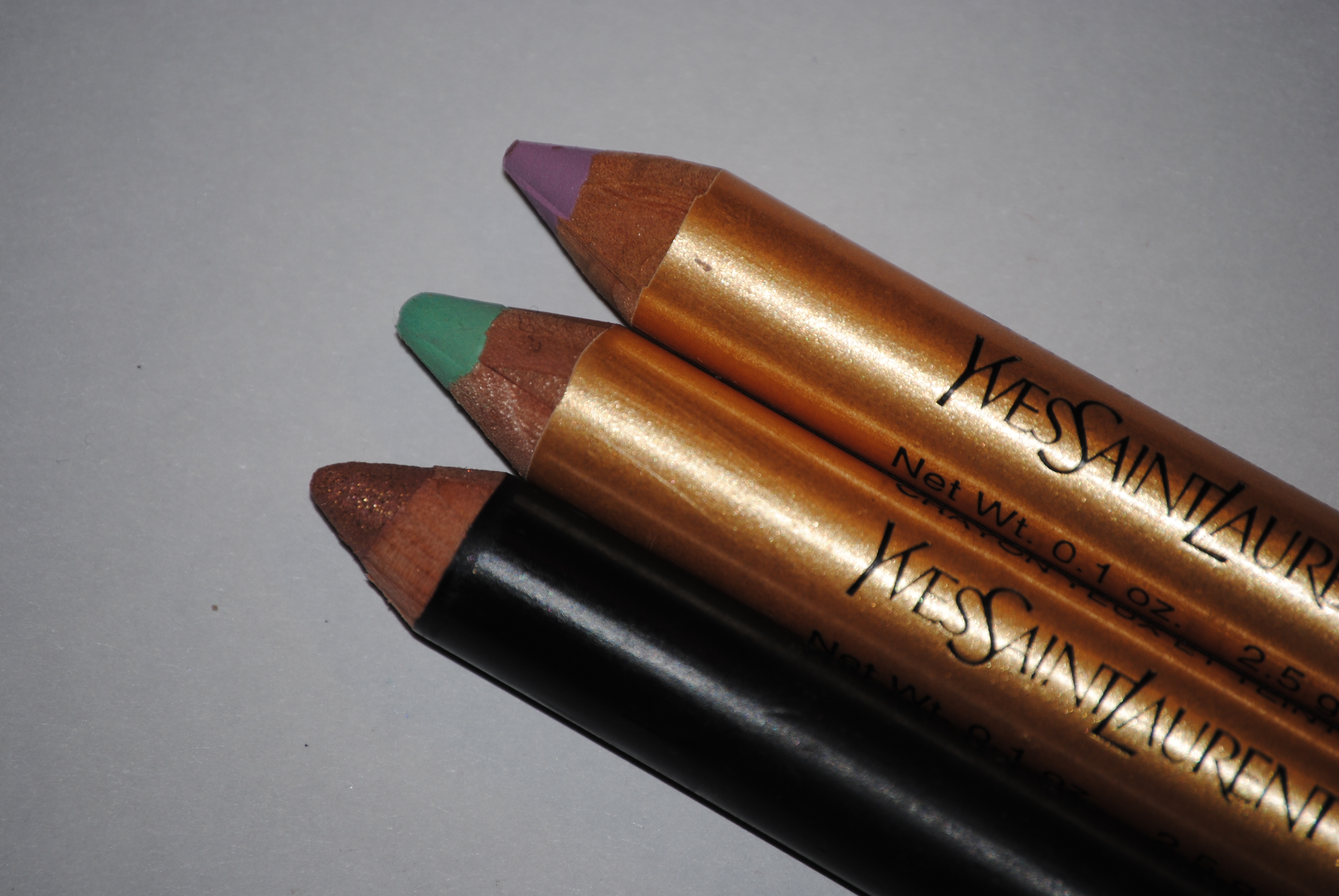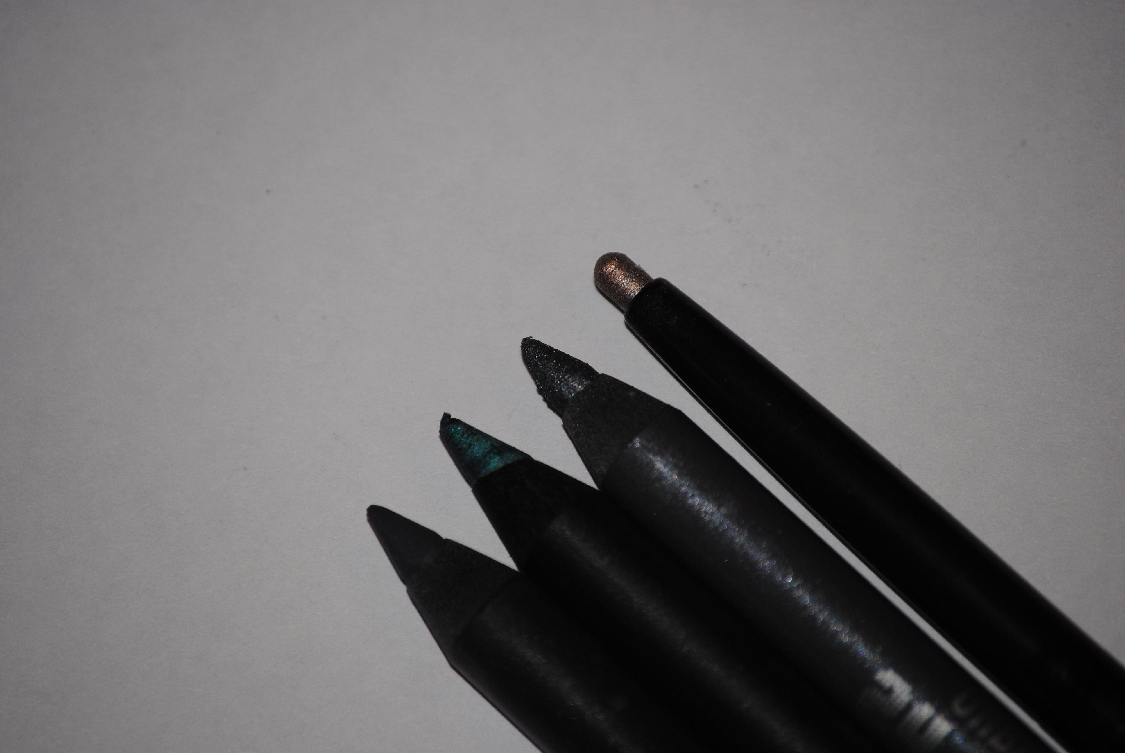 I don’t really understand chubby liners; in my opinion, the thicker point of these pencils would actually work against you achieving any kind of detailed work. The NARS liner was definitely a spur of the moment purchase, as I later found out that the colour didn’t work well with my skin tone and as for its glitter, it applied rather sparsely, leaving behind a gritty finish. The YSL pencils, while much creamier in formulation, have been in “cold storage” for many years now (gulp!) and even though their application is smoother, I found the shades themselves rather chalky in appearance. Interesting concept, but not very versatile in my opinion.