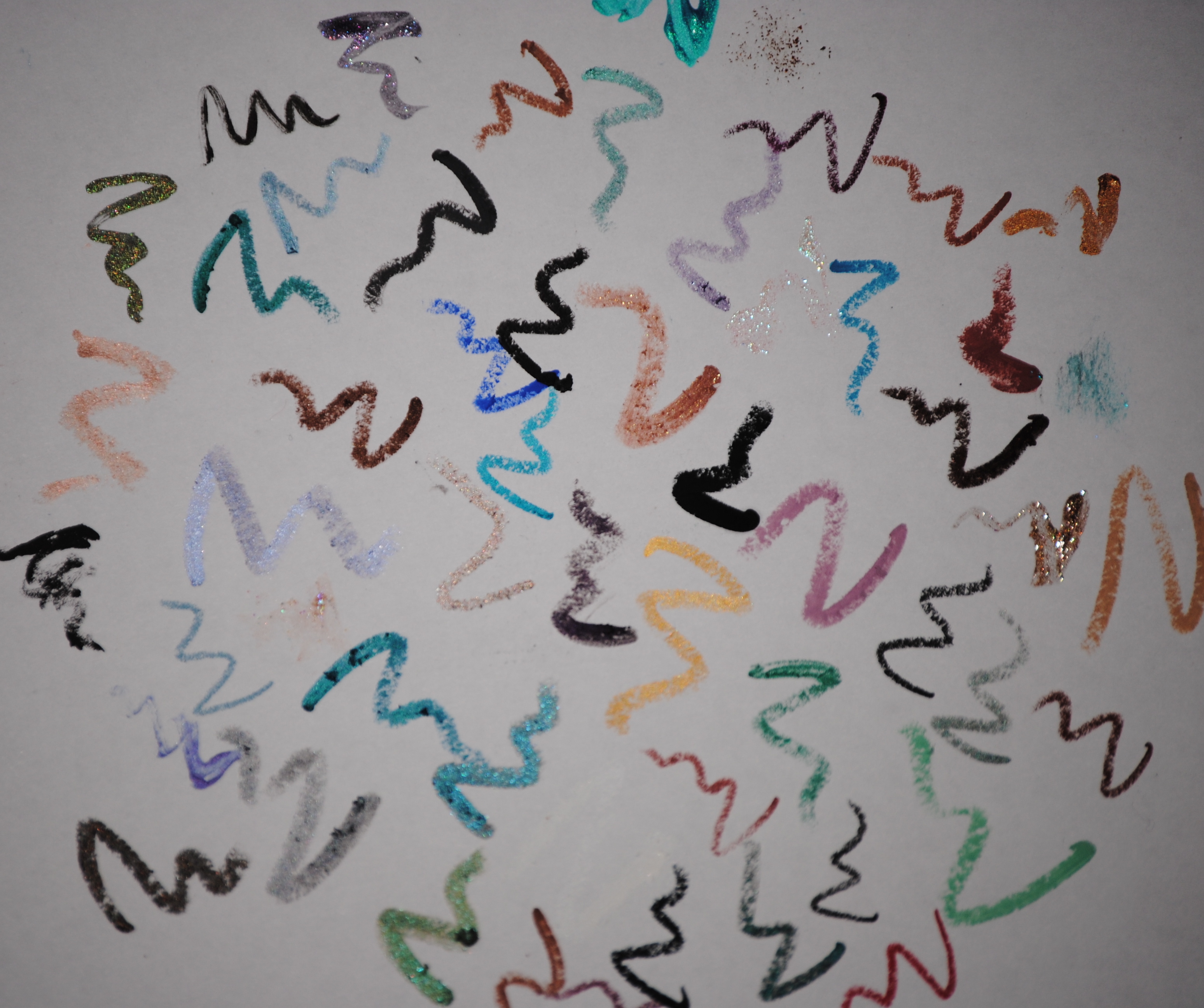 No matter your skin tone and/or eye colour, a black eye liner pencil is an absolute MUST in your makeup arsenal. Its versatility is unquestioned, as it can be used both above and under your lashes, and makes eyes simply stand out when applied to the waterline. A softer version, like the Armani (2nd from left), glides effortlessly on skin without pulling or tugging, and lends itself well to be being smudged, while a waterproof one like the CHANEL (1st from left), is perfect for the waterline, when you want your liner to stay in place. The Urban Decay (middle) turned out to be less dense than I originally believed it to be, while the Stila (2nd to last from right) had unbelievable pigmentation and was almost impossibly soft, although it has a tendency to migrate more as a result of its texture. The YSL was part of a GWP (gift with purchase), and as such, I have yet to use it, but in swatching it, I noticed that it seemed much rougher-feeling than the others and needed more pressure to properly apply – not preferred when dealing with the eye area.