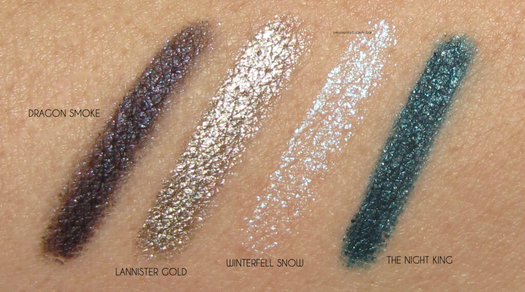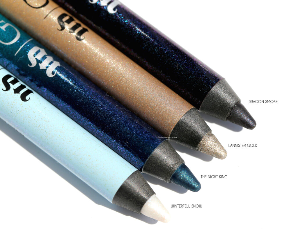 Game Of Thrones 24/7 Glide On Eye Pencils (CAN $25.50/each) | When it comes to eye liners, Urban Decay has it locked down with the 24/7 Glide On format. Each pencil is long lasting and safe to wear even along the waterline, and all have excellent colour payoff. As far as blending out goes, I suggest working one eye at a time for that, because once these set, they’re definitely there for the duration. Of the four, the shade that stands out the most is hands down Winterfell Snow, and while capturing all its facets on camera is near impossible, the crystalline effect it imparts is truly ethereal.