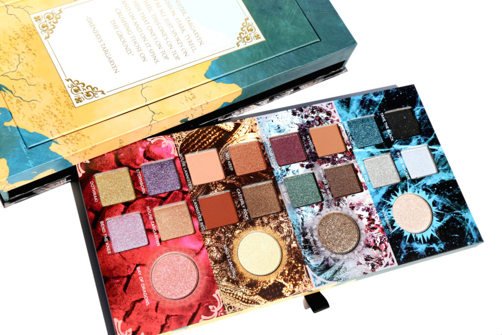 Game of Thrones Eyeshadow Palette (CAN $77.00) | Comprised of 20 eyeshadow shades in total, they are divided into 4 quads that represent the 3 main Houses (Stark, Lannister & Targaryen, respectively) and one quad inspired by “defeating the White Walkers”. The 4 individual hues alongside are there as complement to each quad they’re with, and also serve as “transformer” shades; they add an entirely new element to whatever eyeshadow they’re applied over. As seen in the swatches below, the pigment level of each shade is absolutely stellar and all display excellent blendability, while staying power (over primer) is wonderful, with the colours staying true until removed.